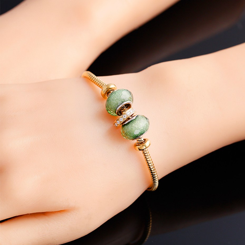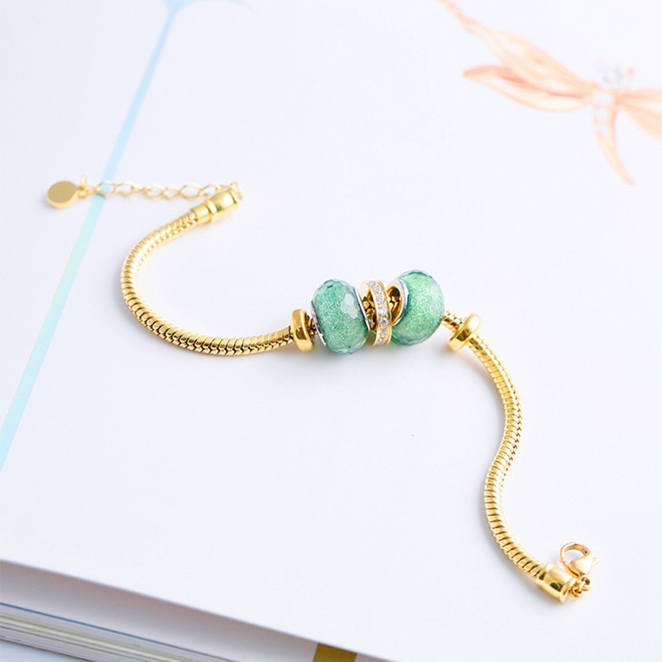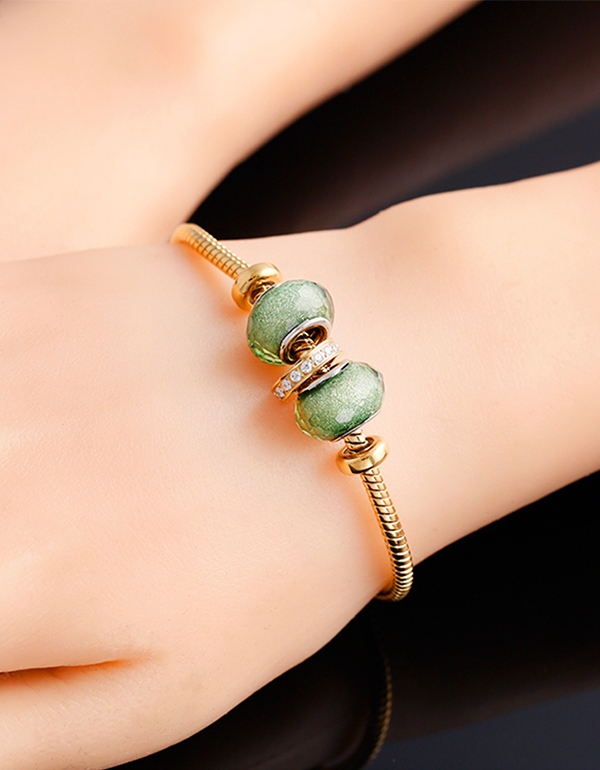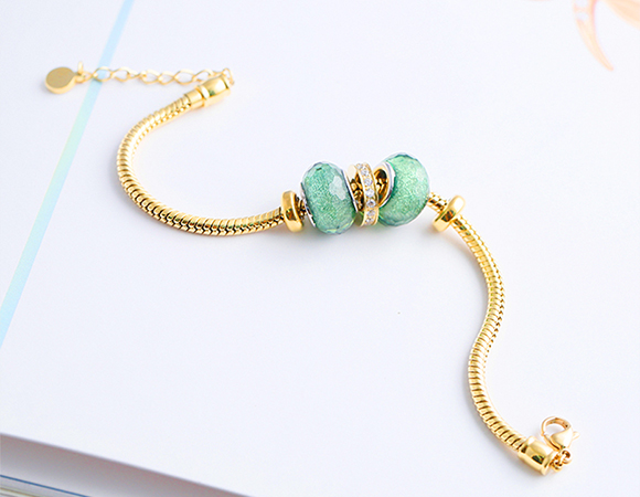 【商品颜色】绿/蓝琉璃珠子金色手链