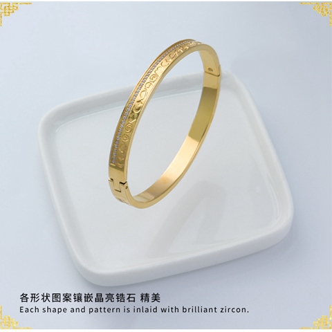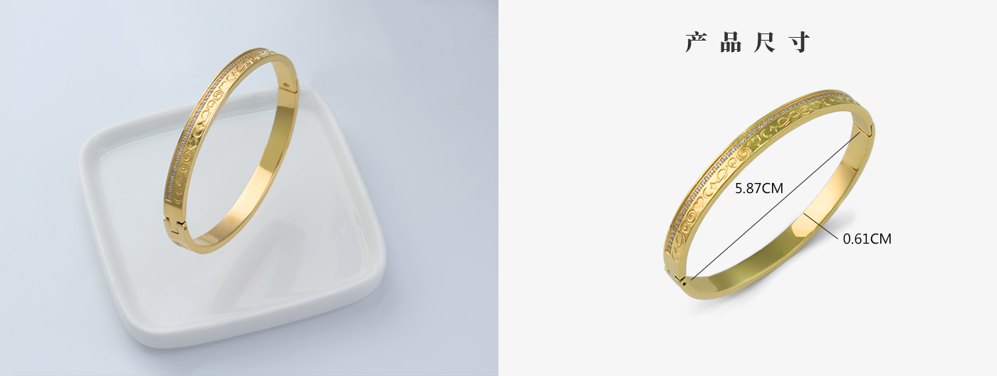 金属手镯贴牌代工椭圆多形状图案镶钻手镯