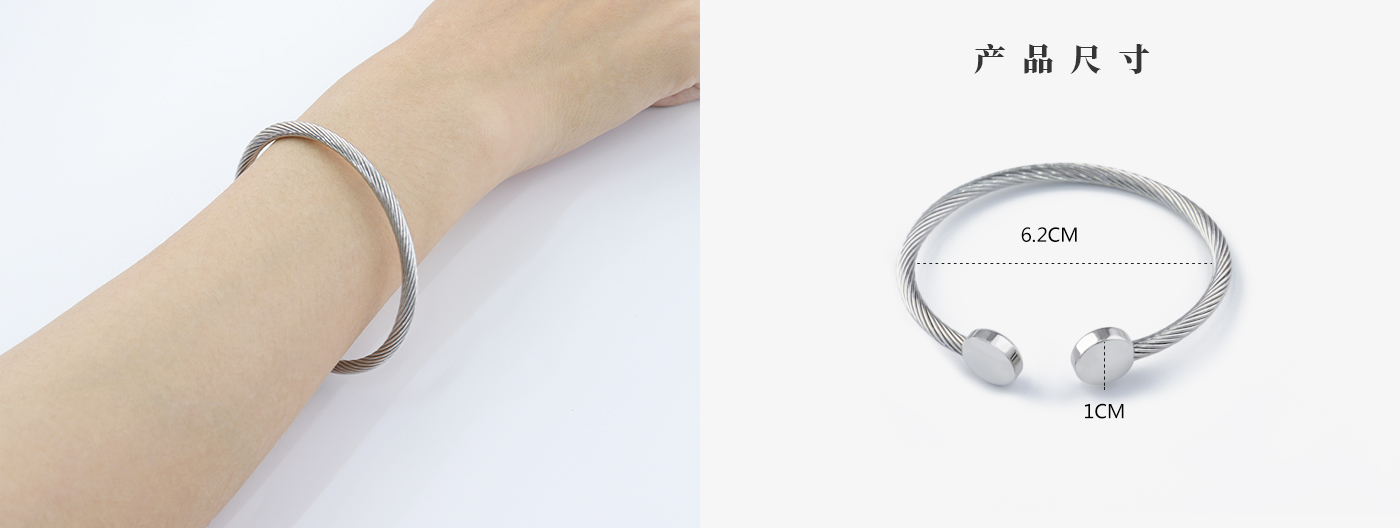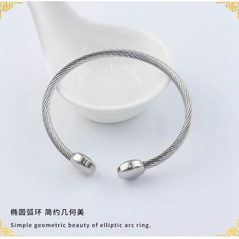 手镯首饰贴牌亮银色螺旋纹钢丝线手镯