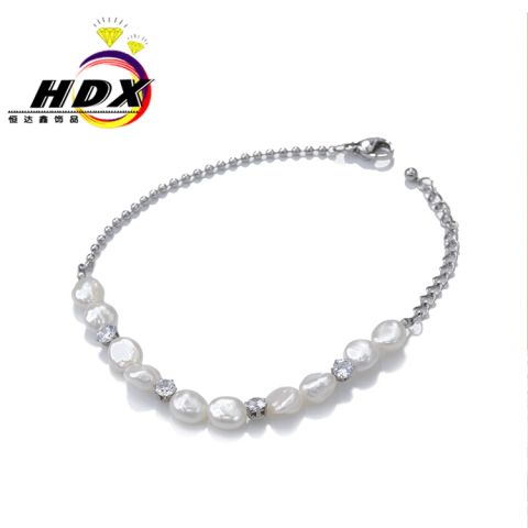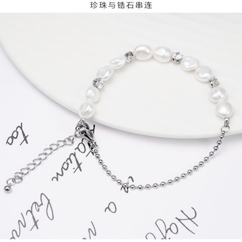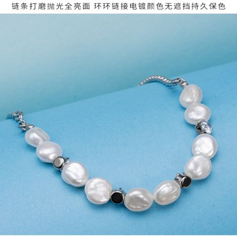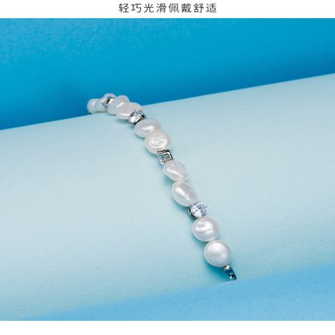 "银色自然风不规则珍珠手链"