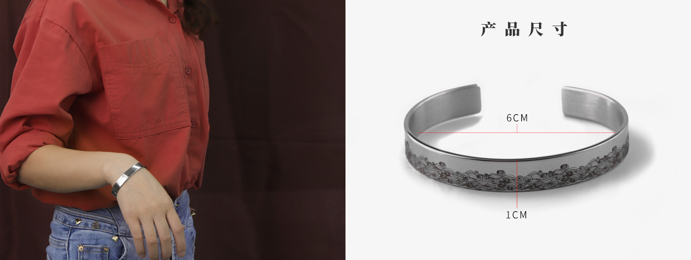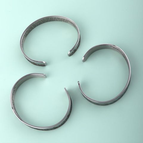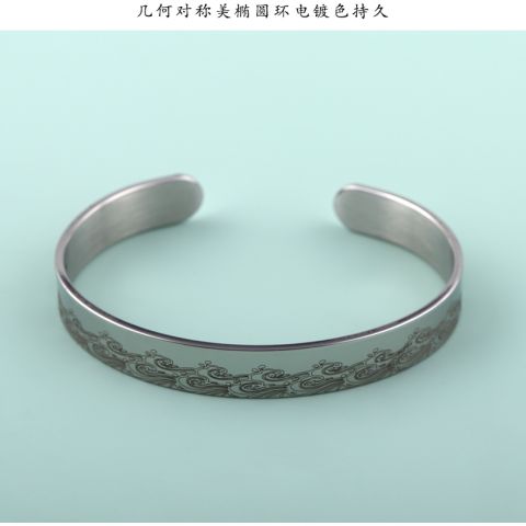 不锈钢手链首饰艺术花纹内环刻字符开口手镯