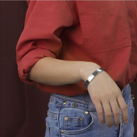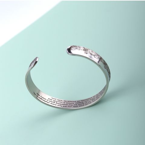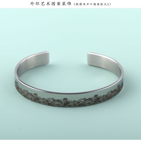 "艺术花纹内环刻字符开口手镯"