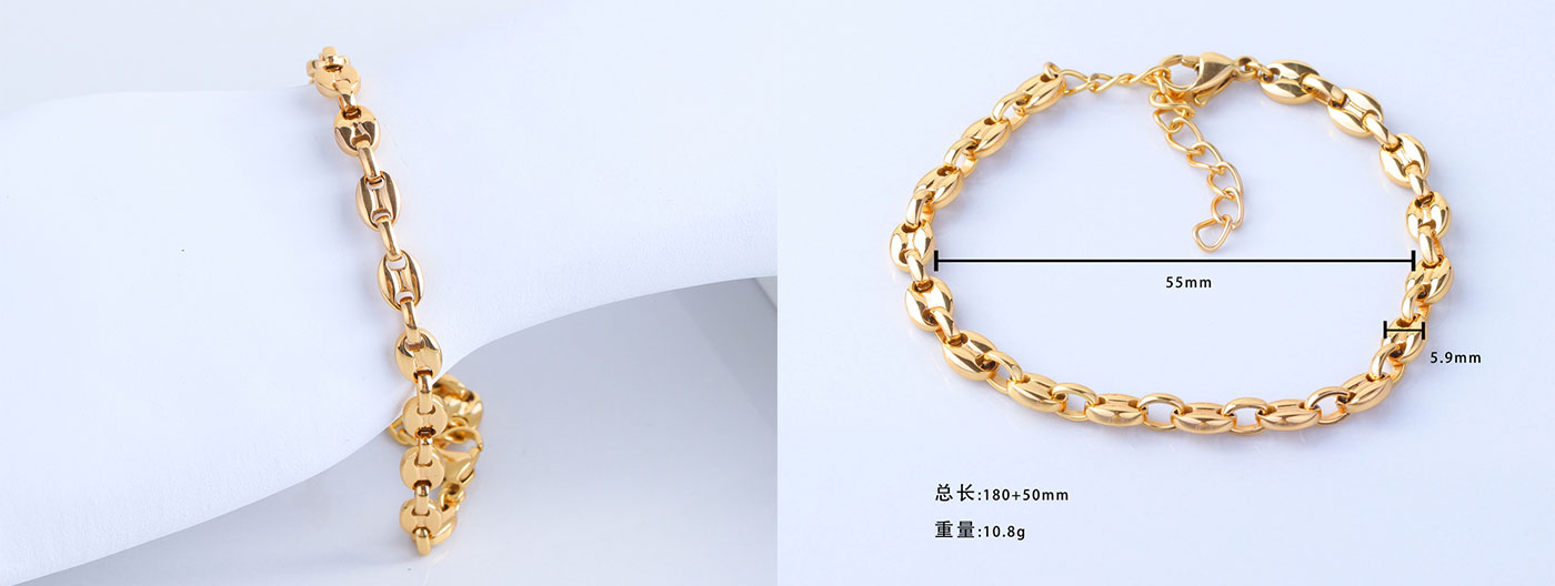 首饰代工猪鼻链条咖啡豆镀金手链
