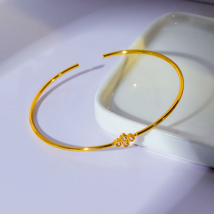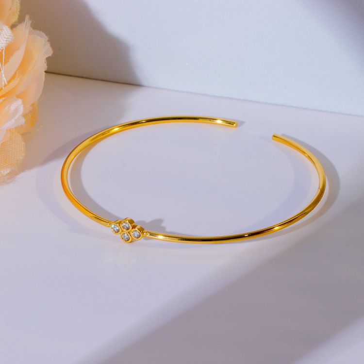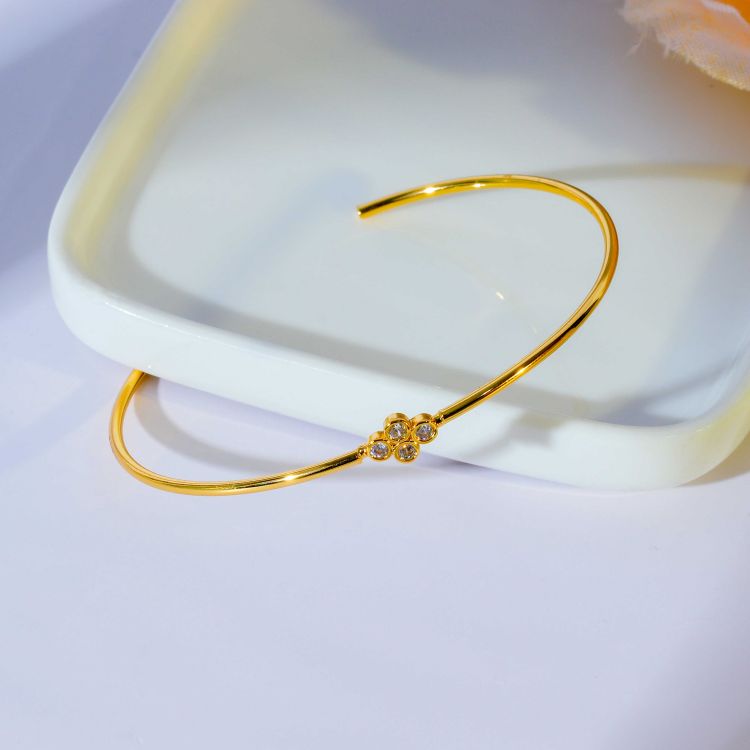 "钢线不锈钢镶锆石细钢丝镀金妇女手镯"