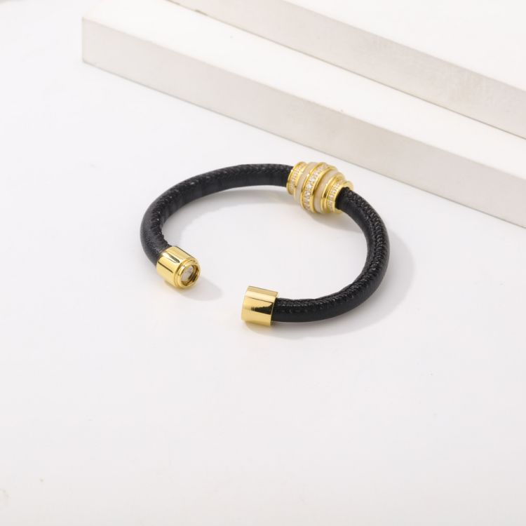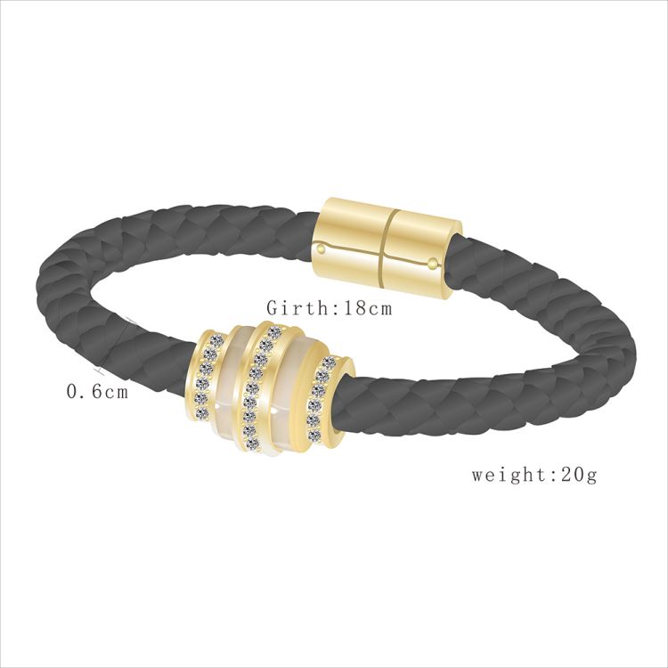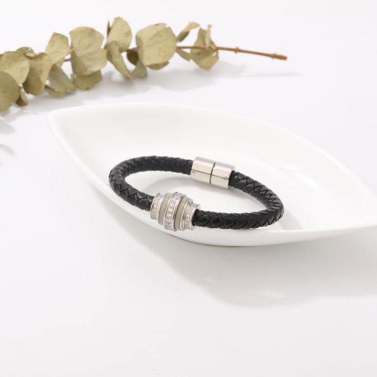 "不锈钢镶钻编织皮革磁性男女款手镯"