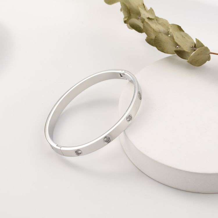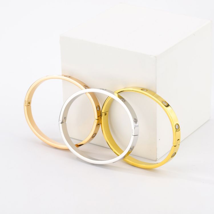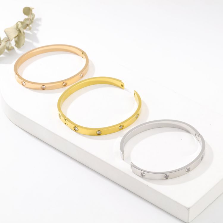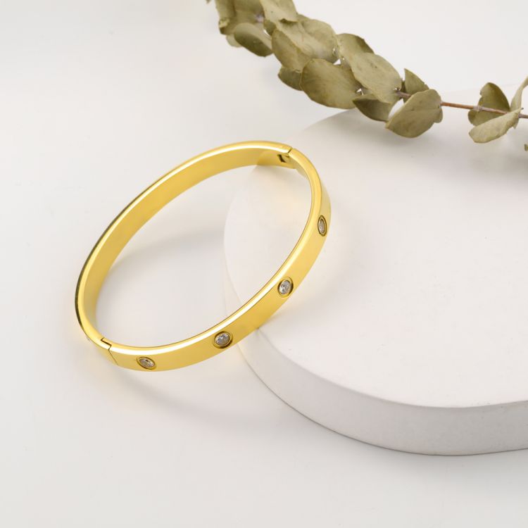 加工定制不锈钢镶钻卡扣手镯镀14K金