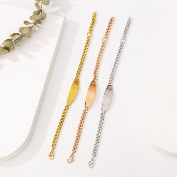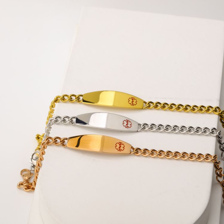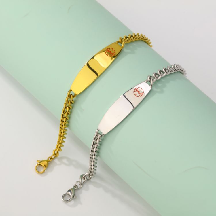 医疗健康标志不锈钢双面磨链手链饰品定制