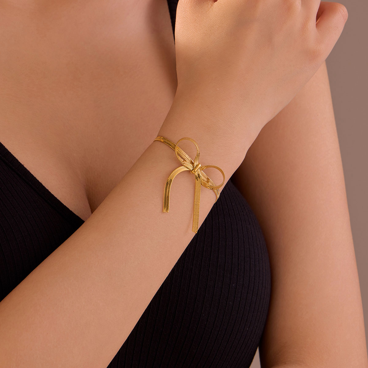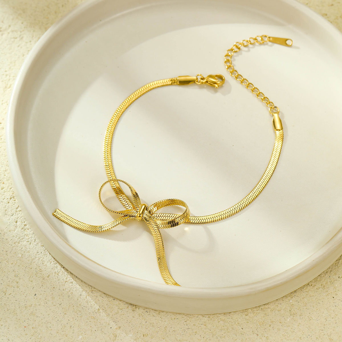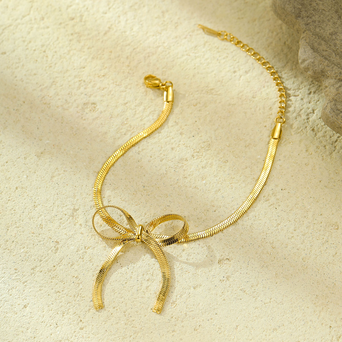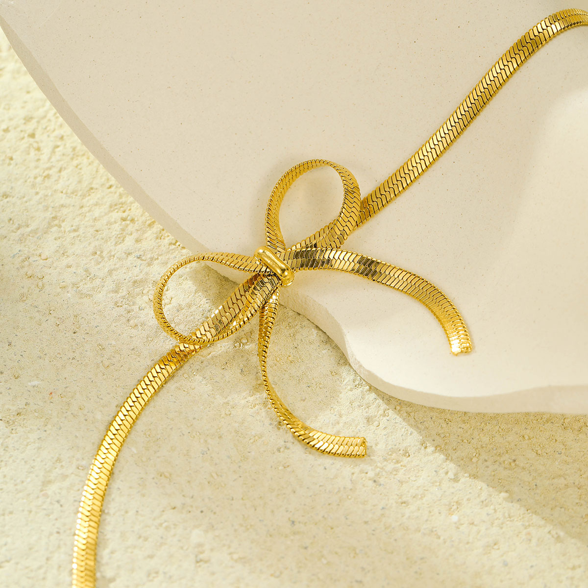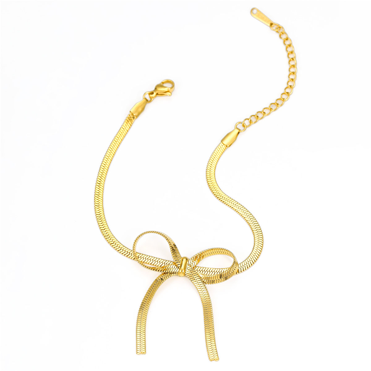 "18K镀金不锈钢蝴蝶结扁平蛇链"