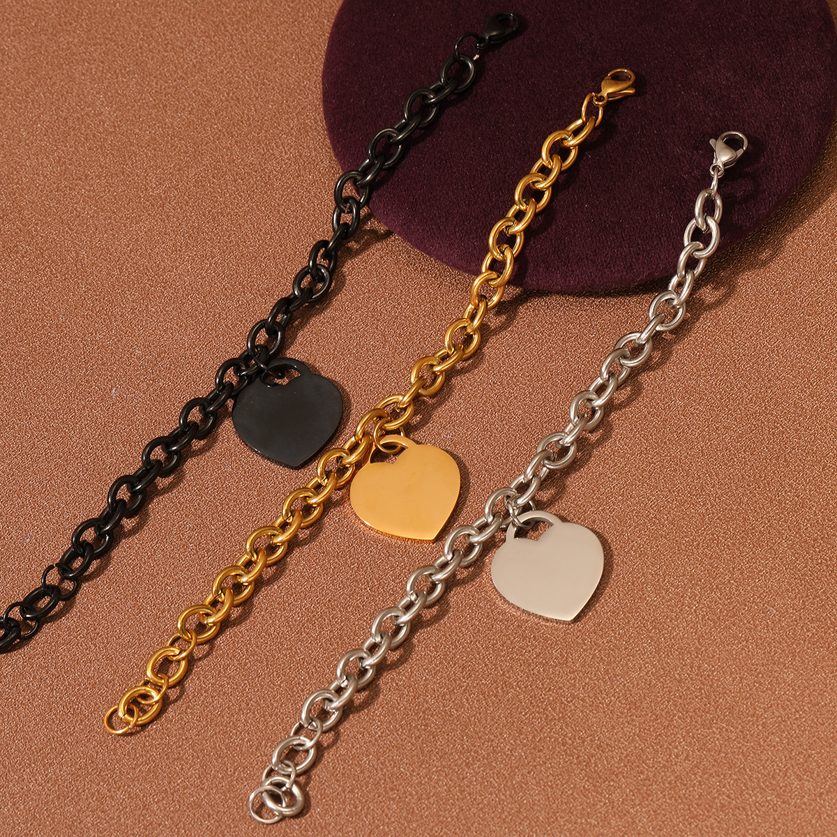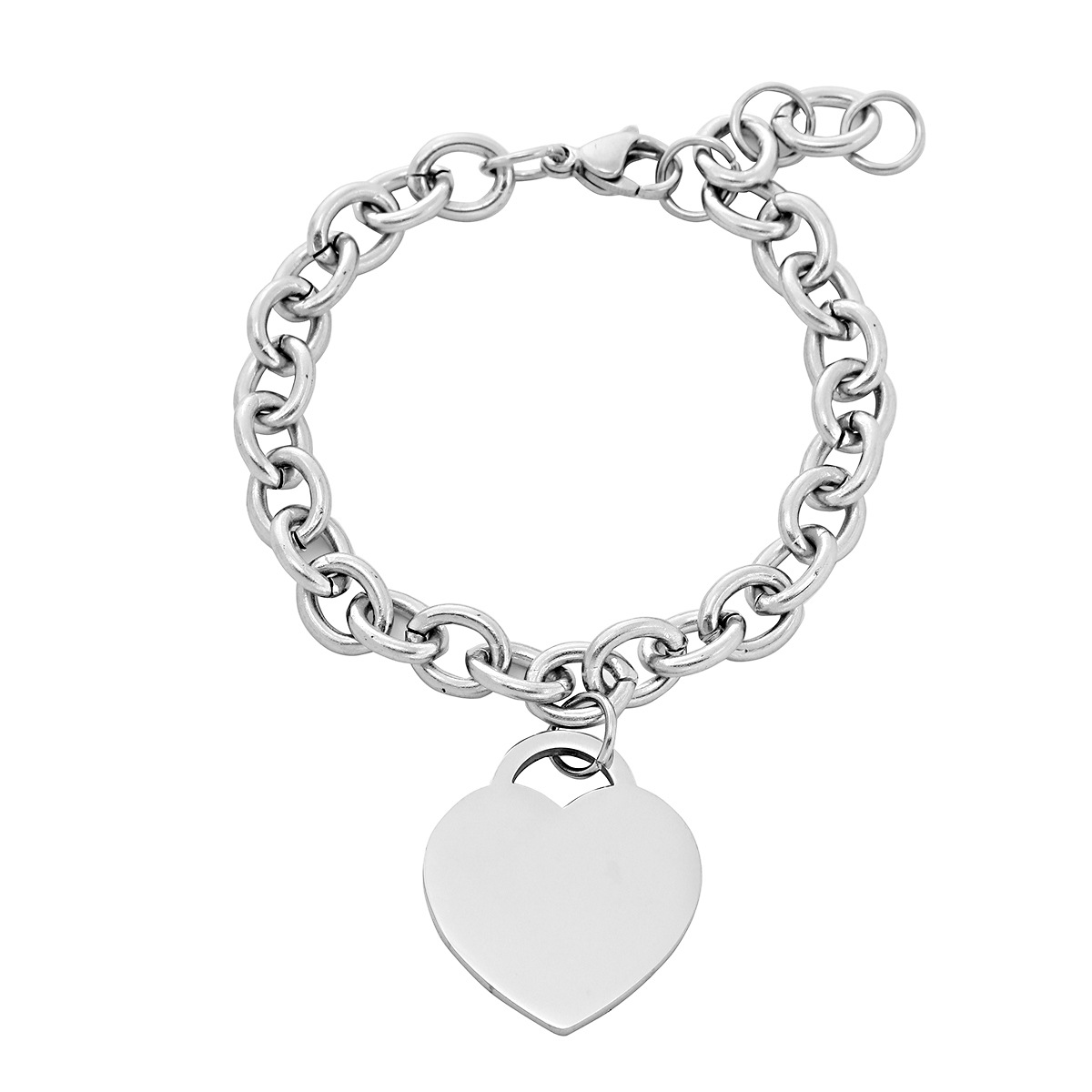 "不锈钢银色情侣爱心吊坠手链"