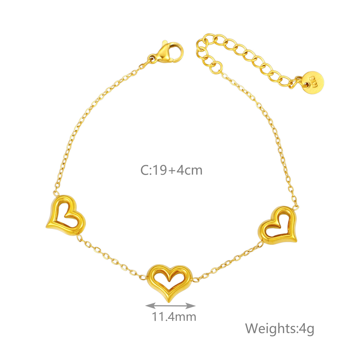 "批发镂空心形手链 18k镀金不锈钢桃心女士珠宝"