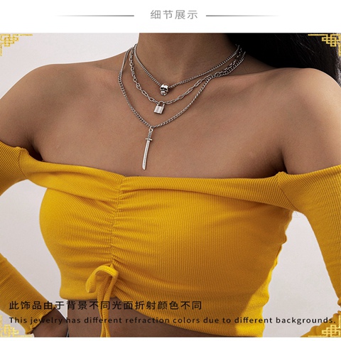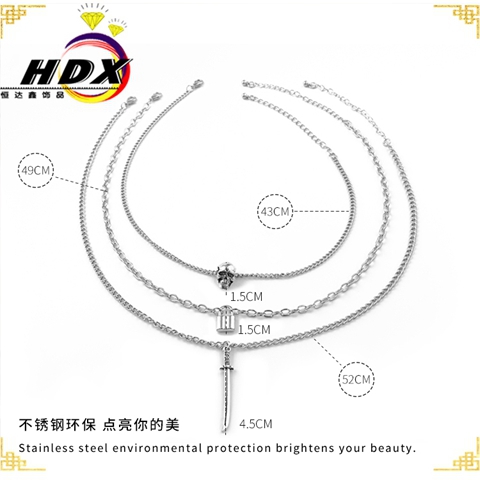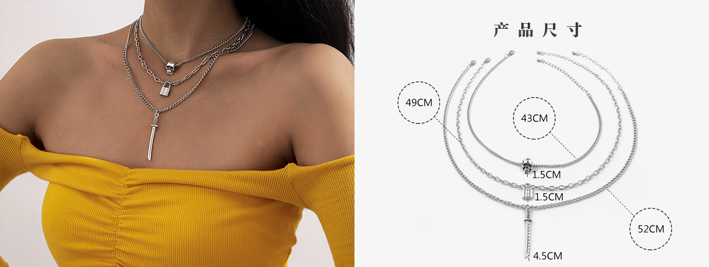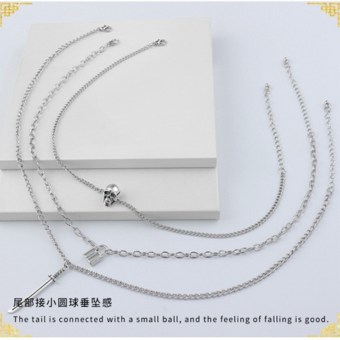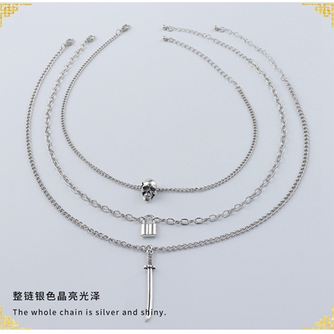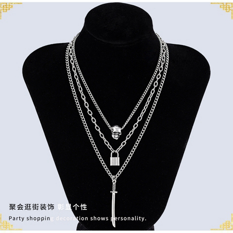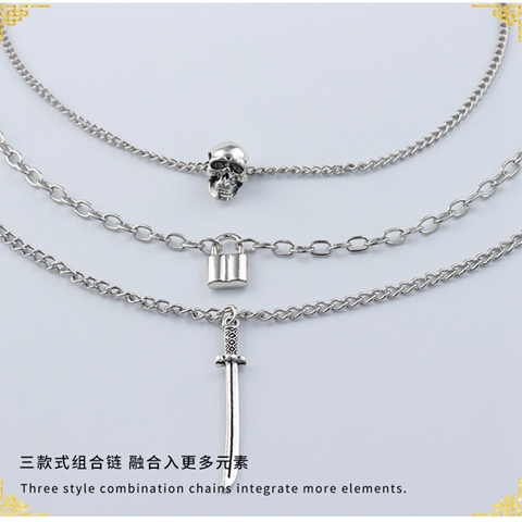 "组合个性骷髅锁剑形坠项链"