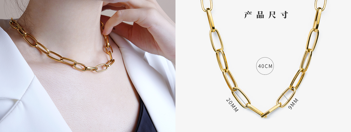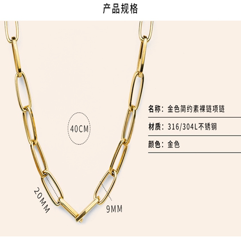 金属钛刚首饰金色简约素裸链项链