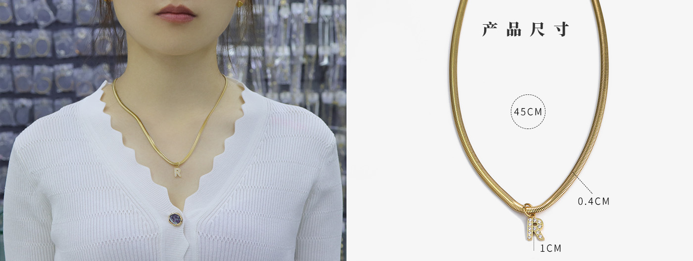 项链批发字母钻圆蛇锁骨项链