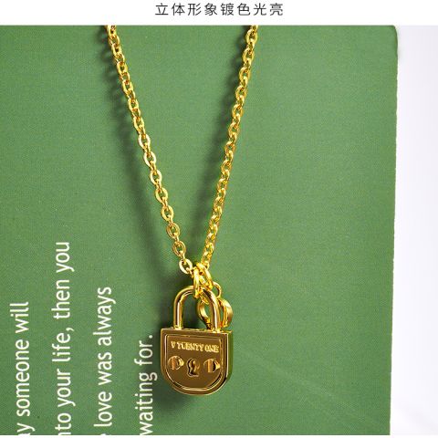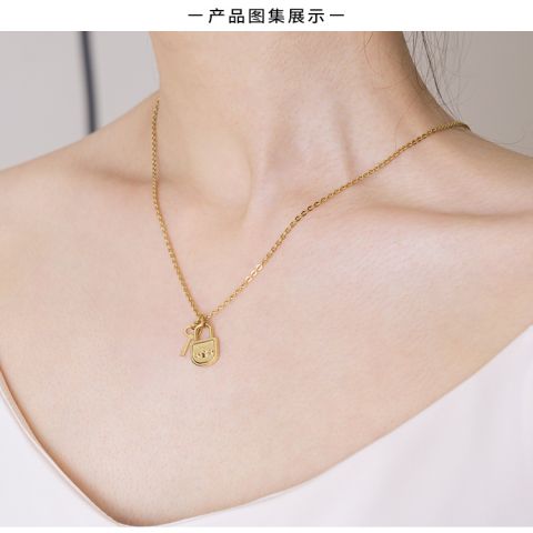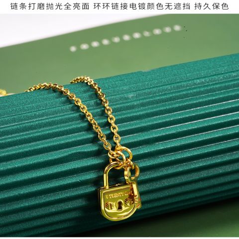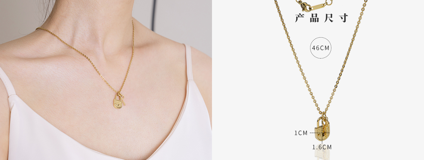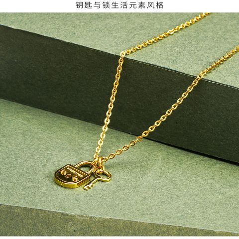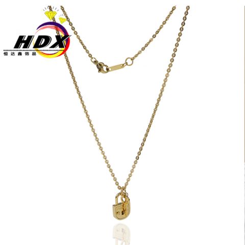定制不锈钢镀金项链个性钥匙与锁项链