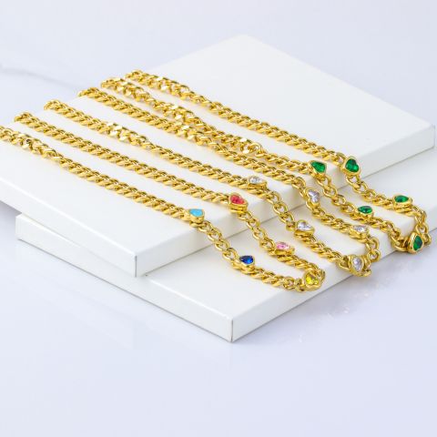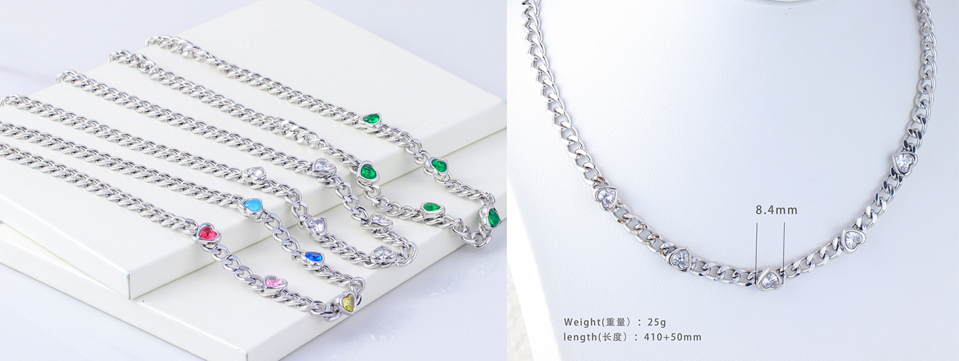 首饰饰品工厂供应商定制镶锆石不锈钢项链
