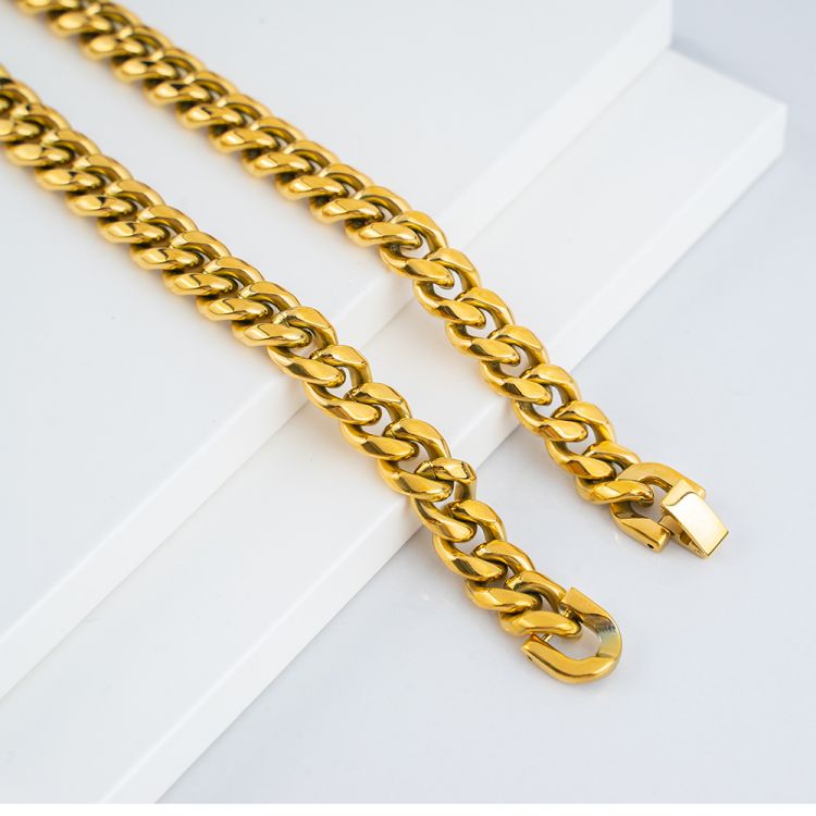 "不锈钢古巴抛光高质量双面磨粗项链"