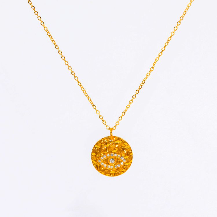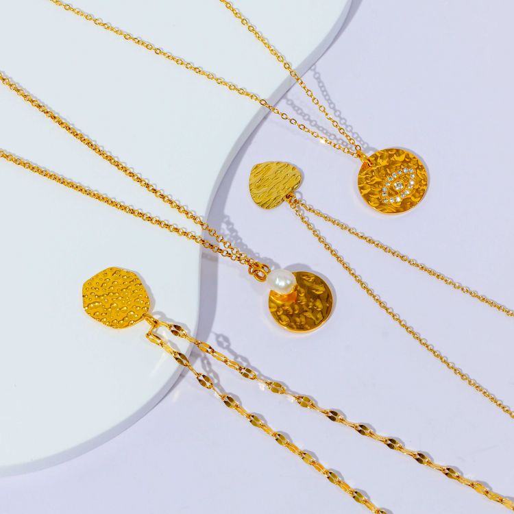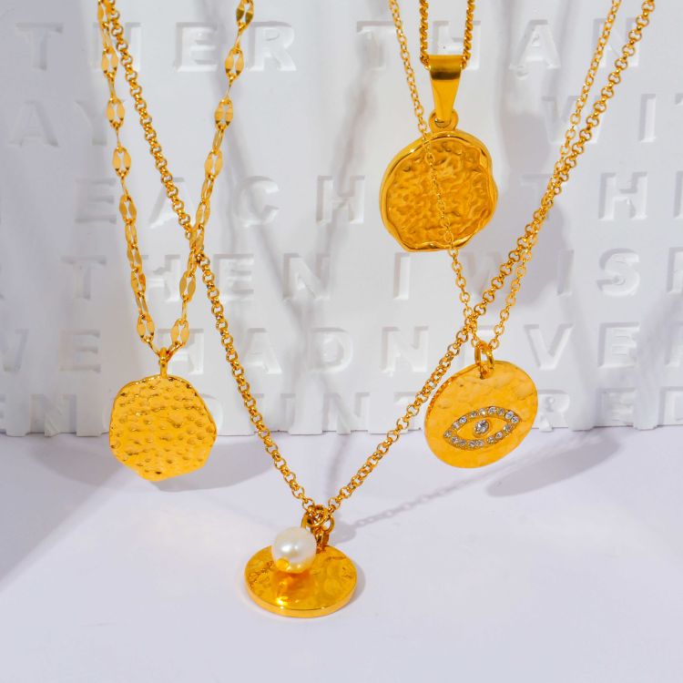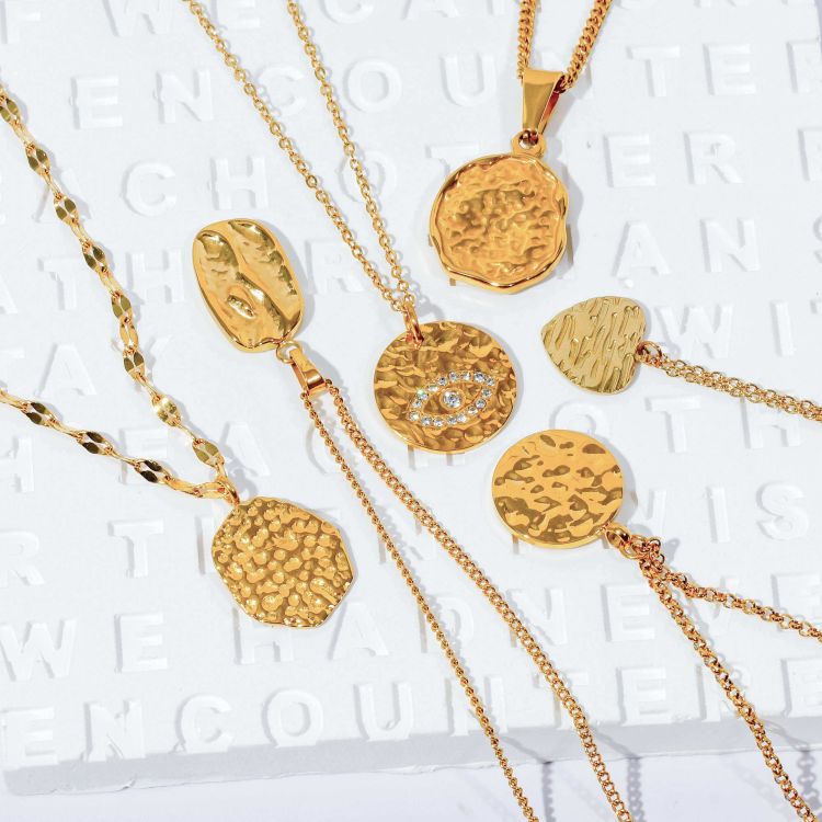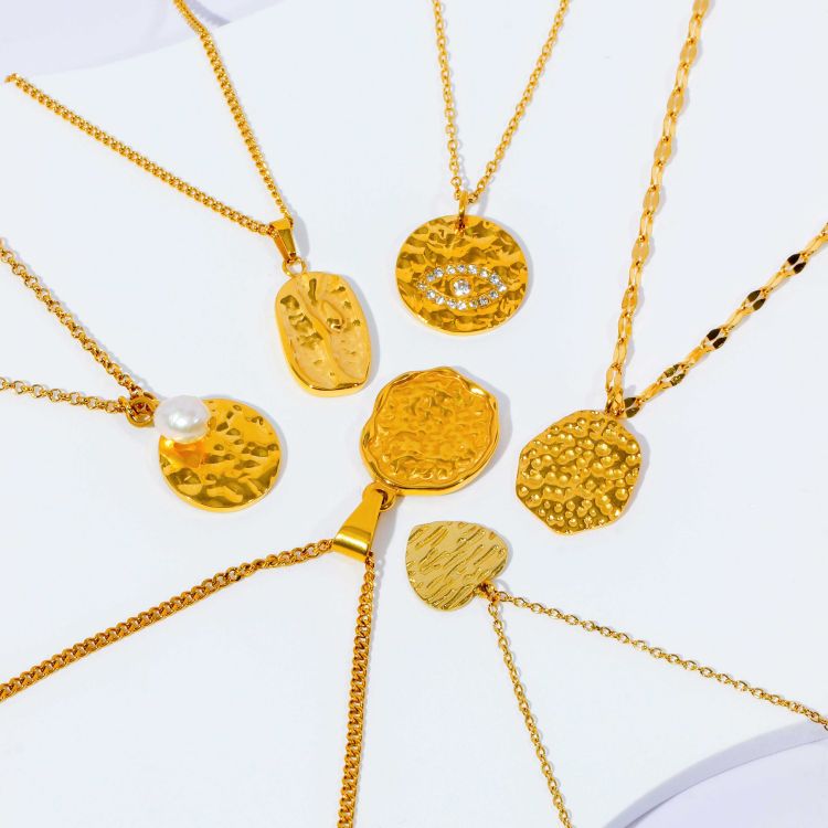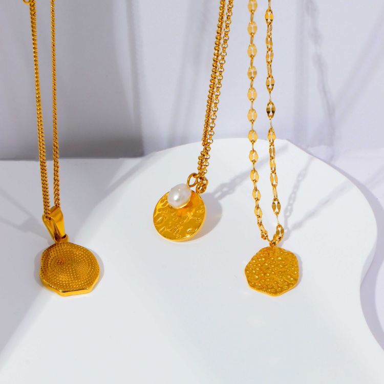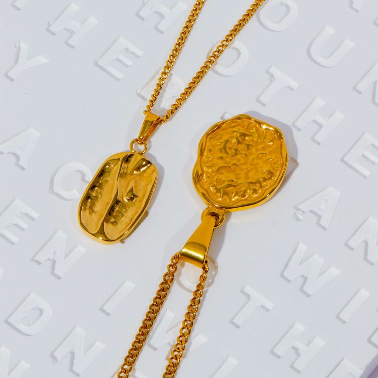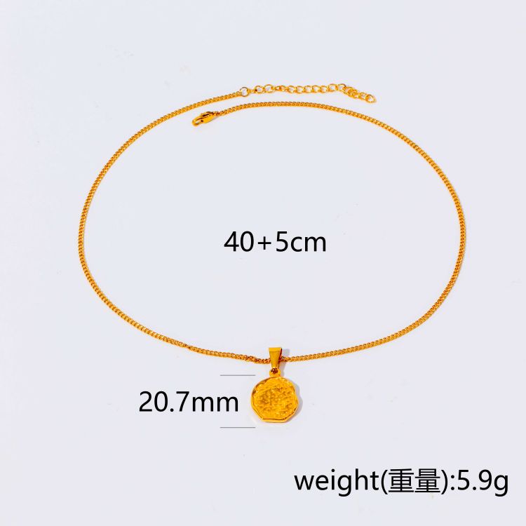 "复古浮雕凹凸纹图案不规则镀18K金币项链"