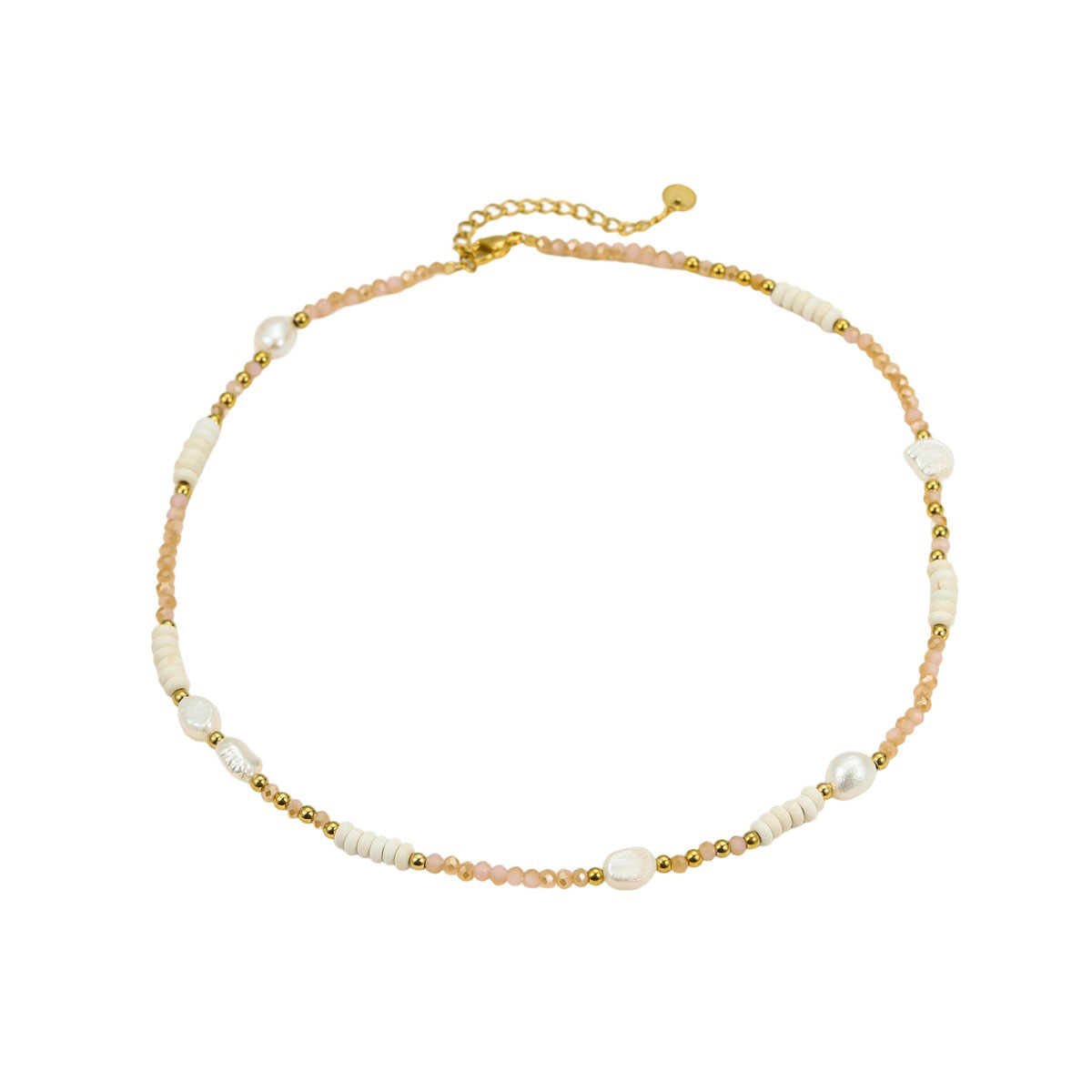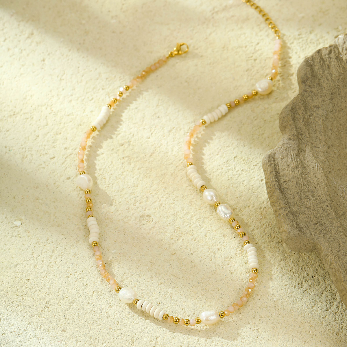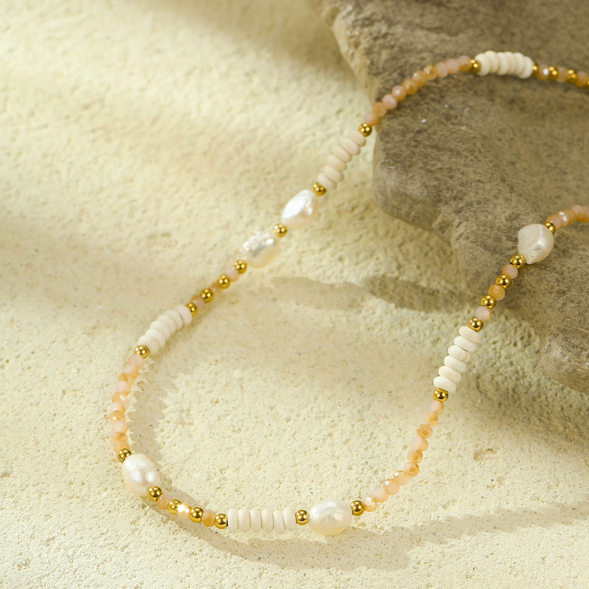 "波西米亚珠淡水珍珠配镀金不锈钢链"