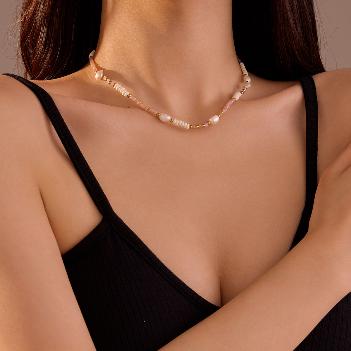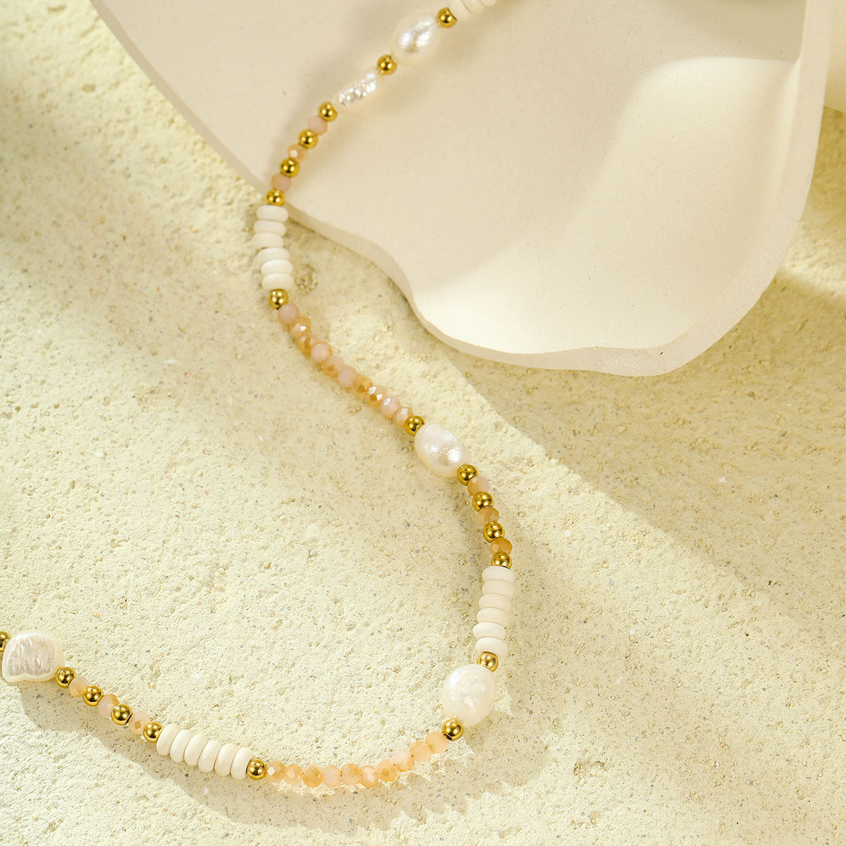 波西米亚珠淡水珍珠配镀金不锈钢链