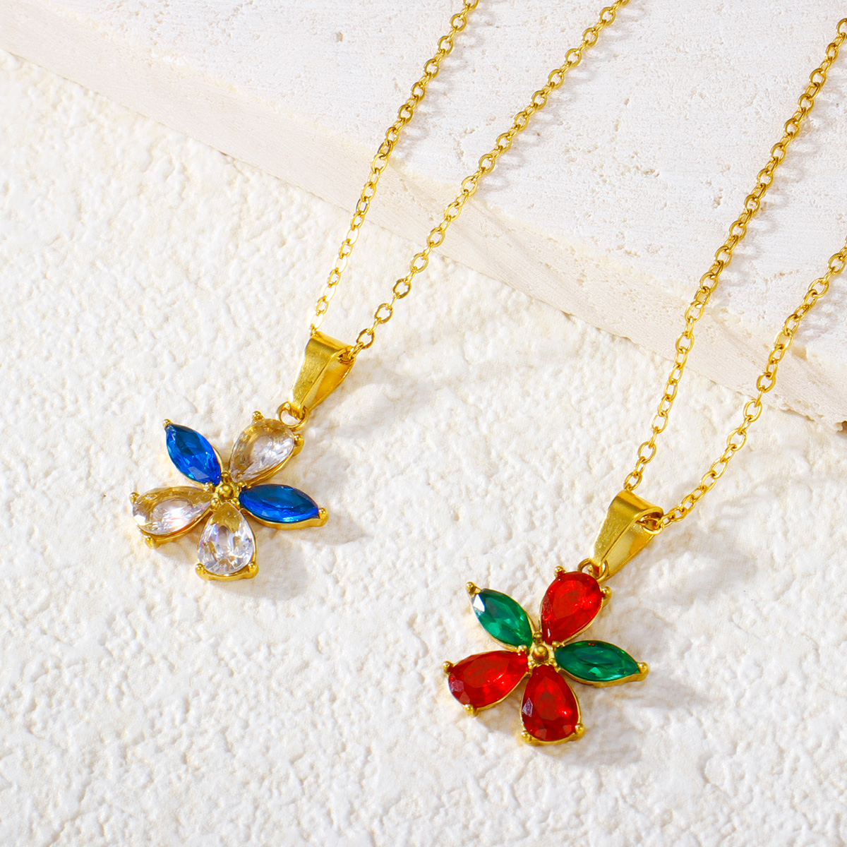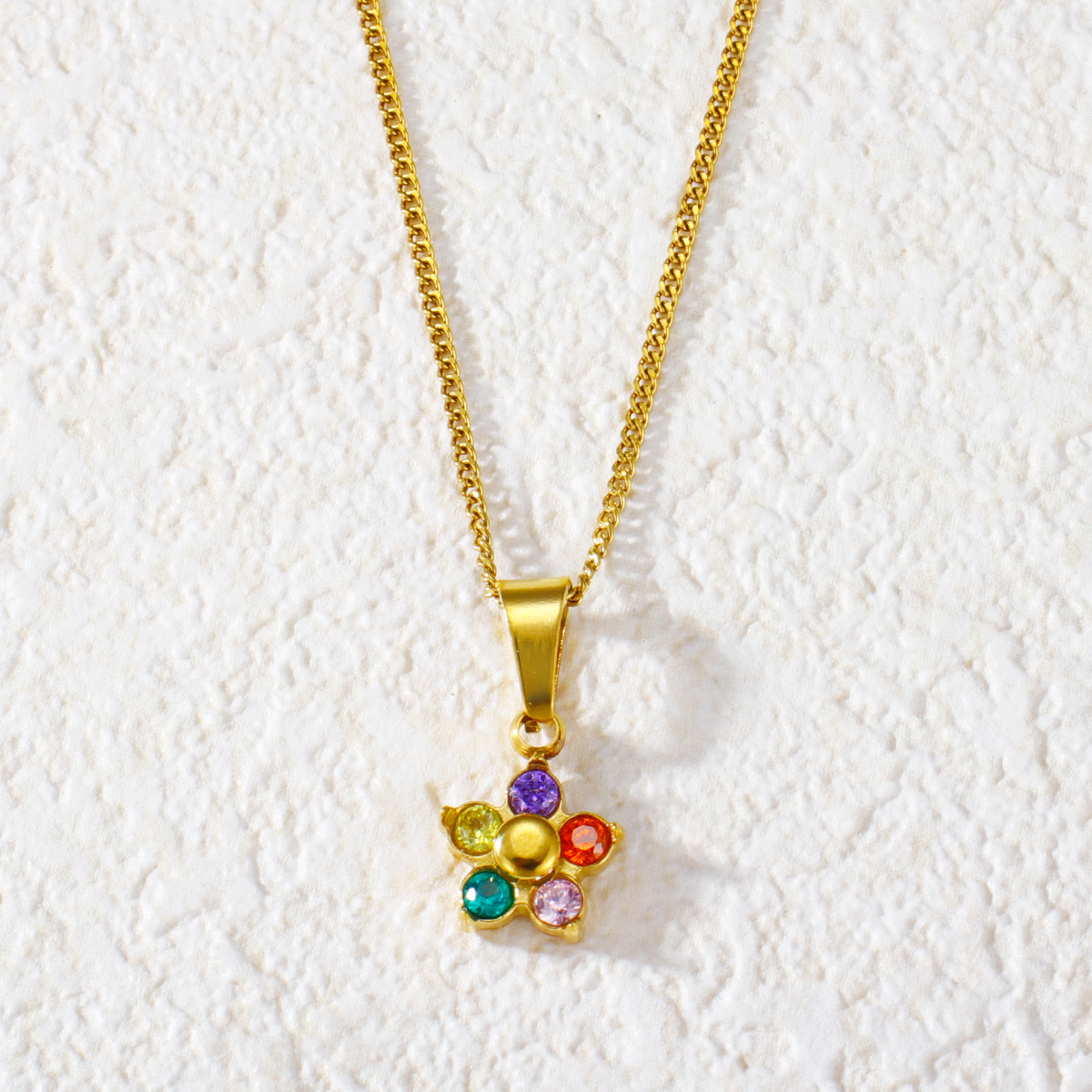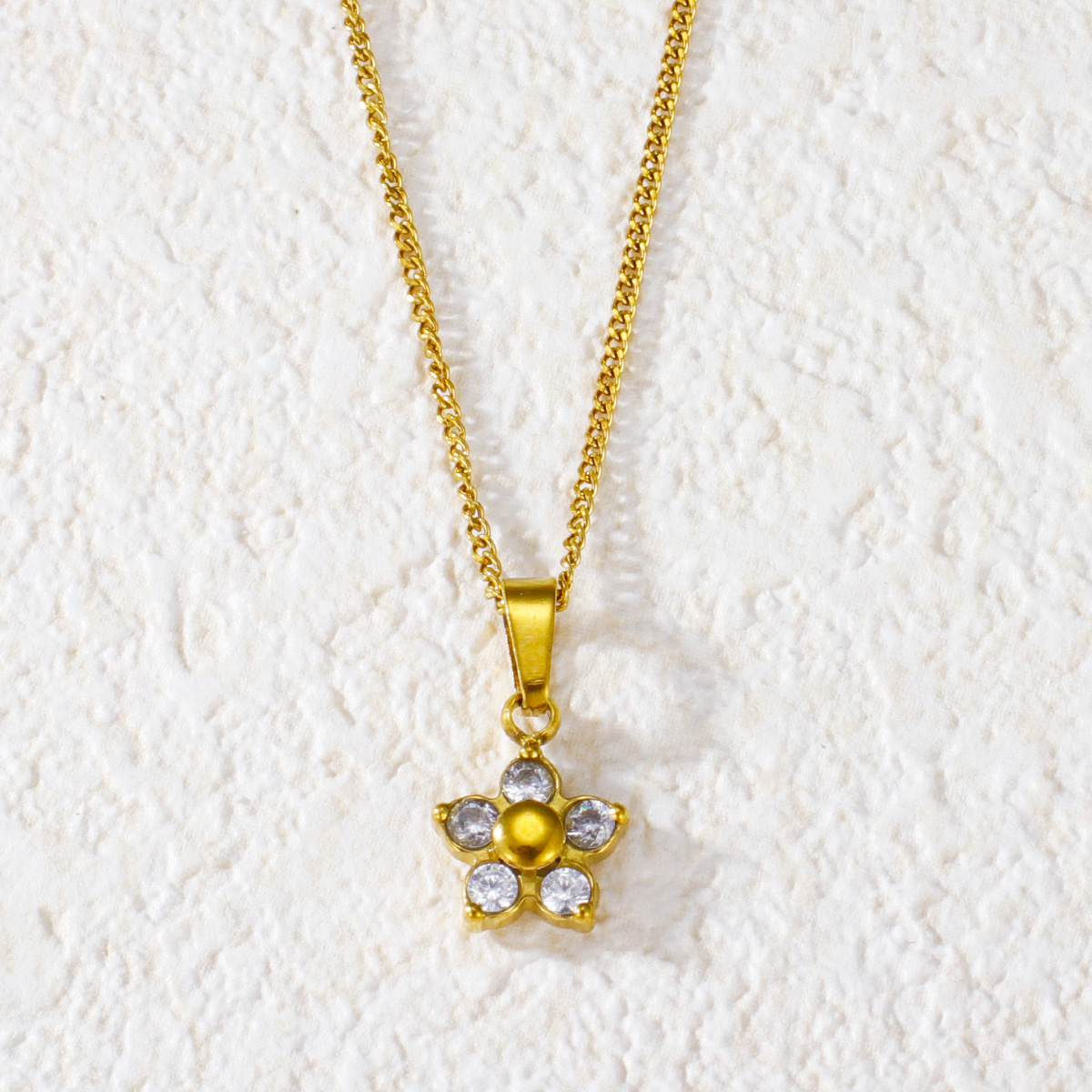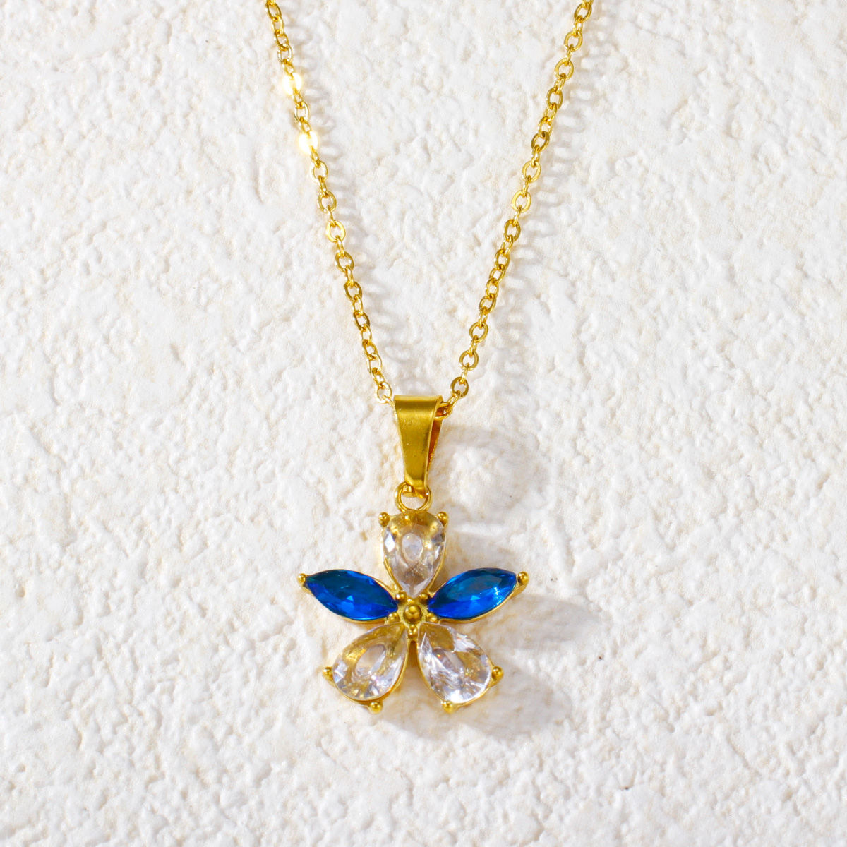 "时尚镀金钻石方晶锆石花形吊坠"
