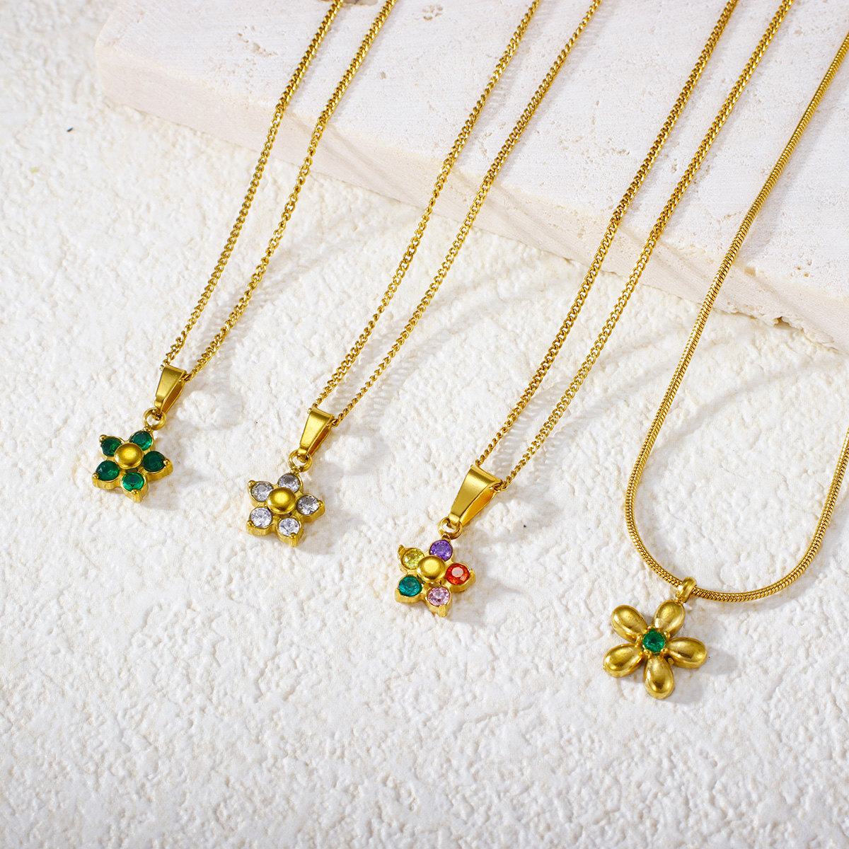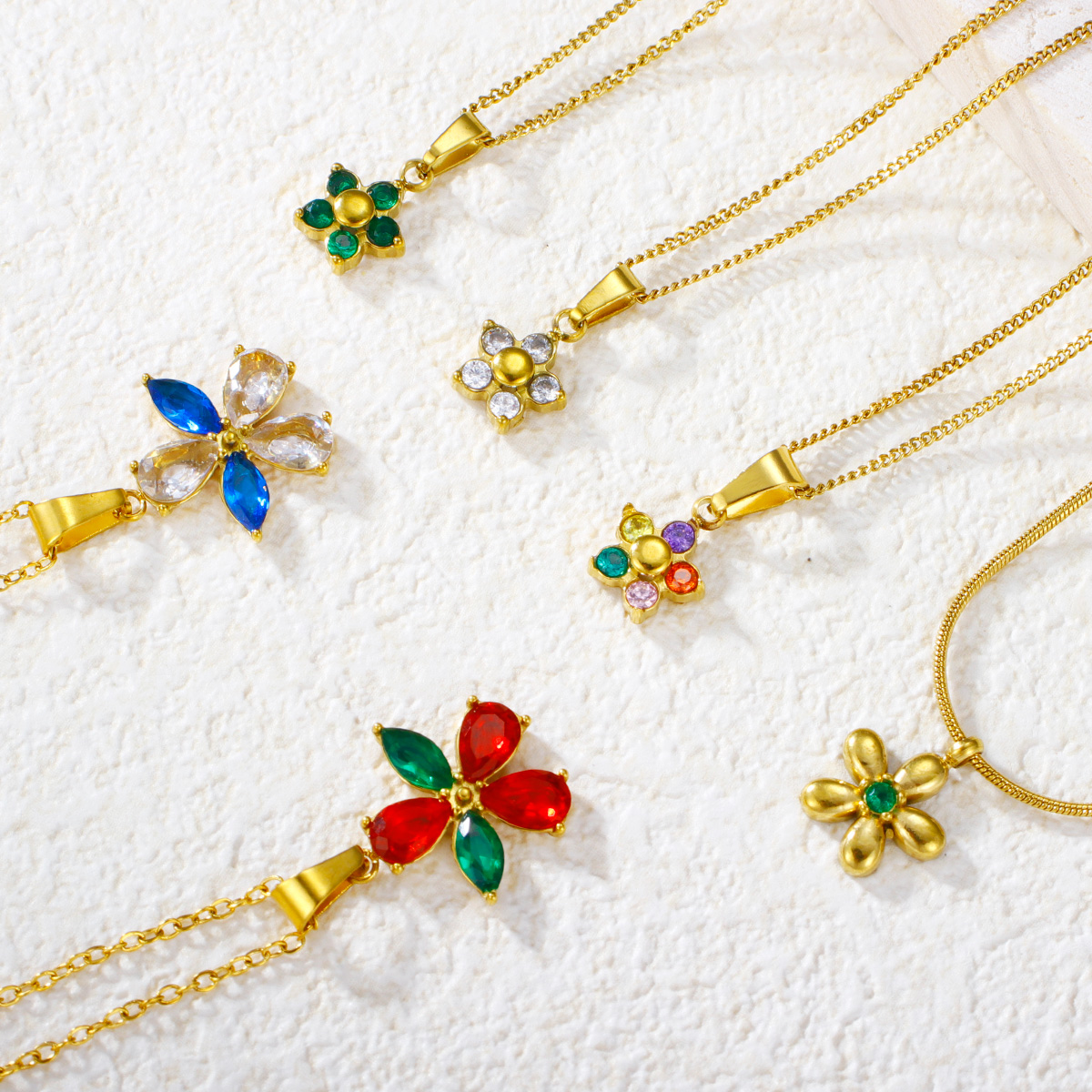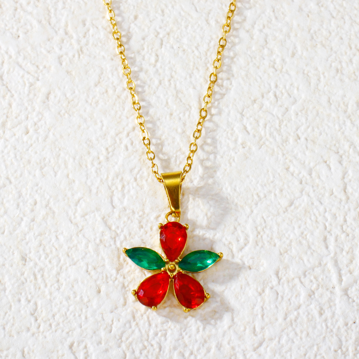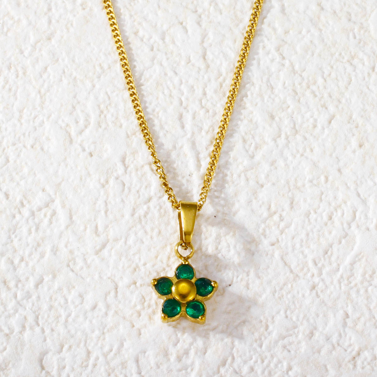 "时尚镀金钻石方晶锆石花形吊坠"