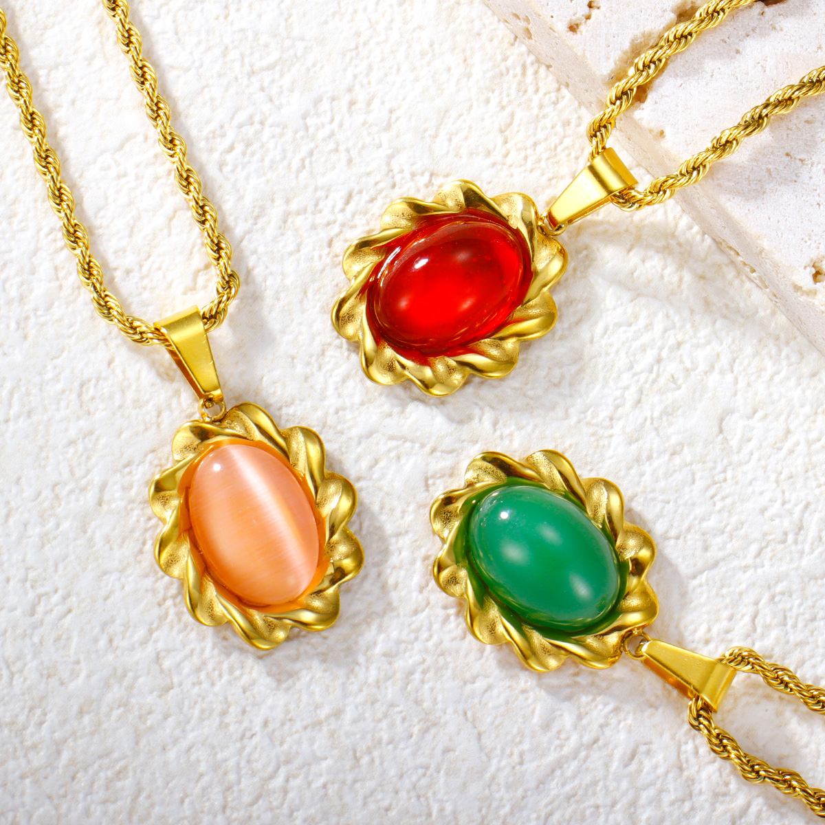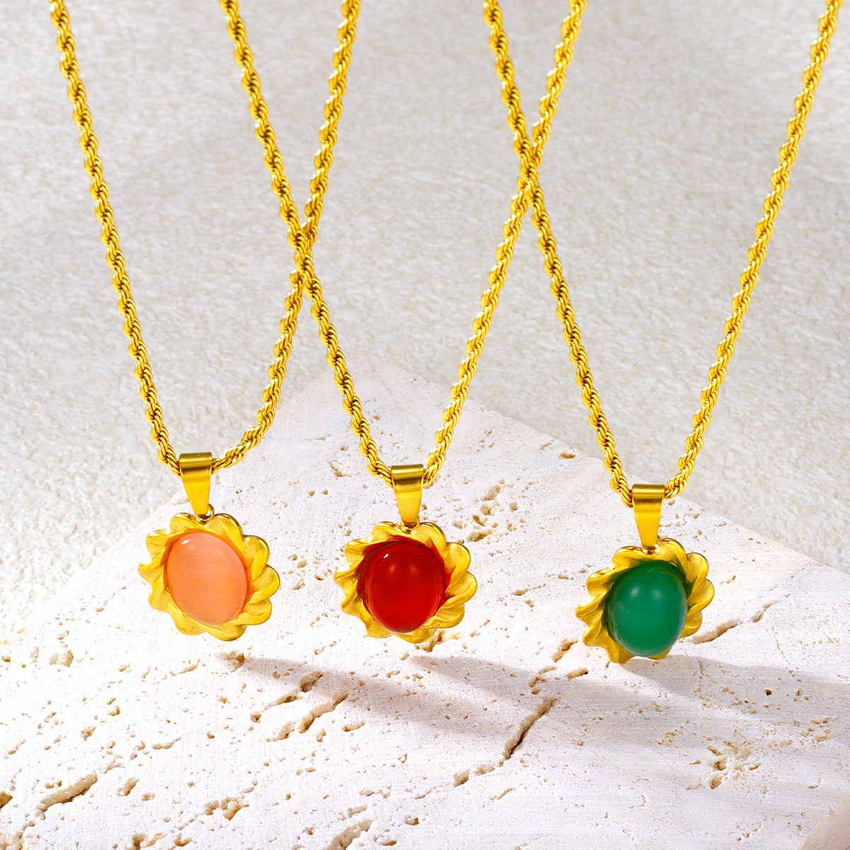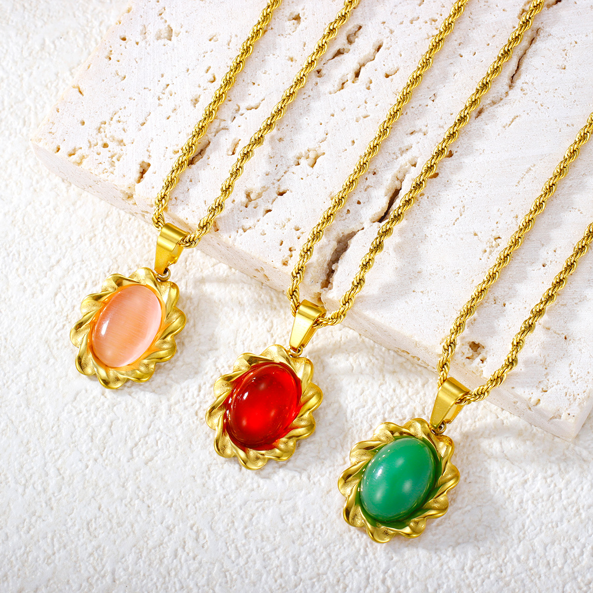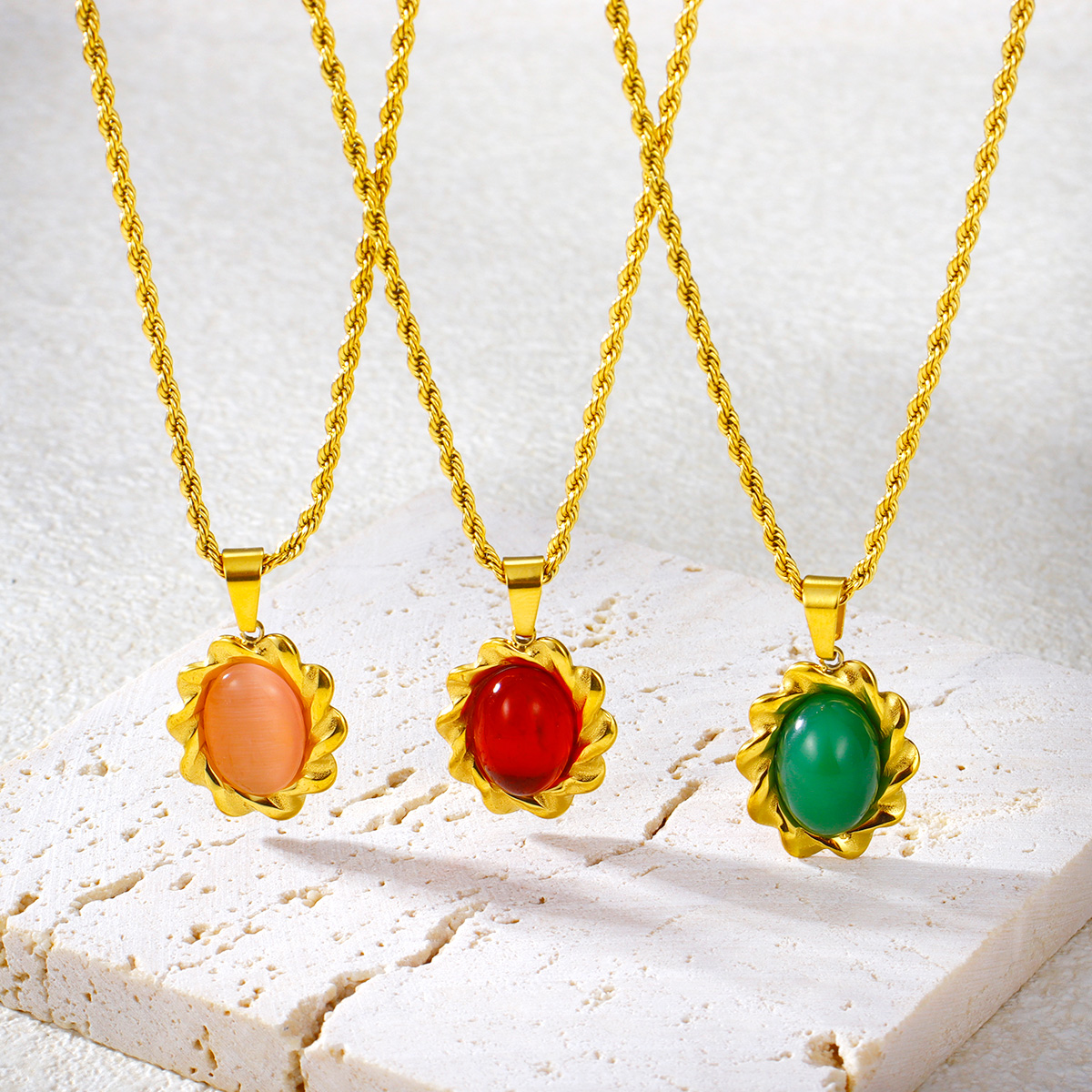 彩色玛瑙吊坠扭链镀金首饰不锈钢项链
