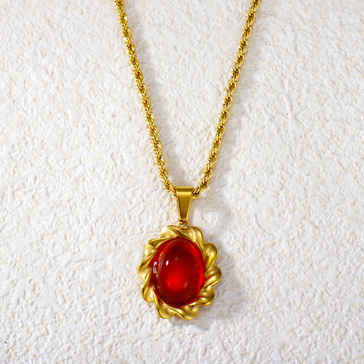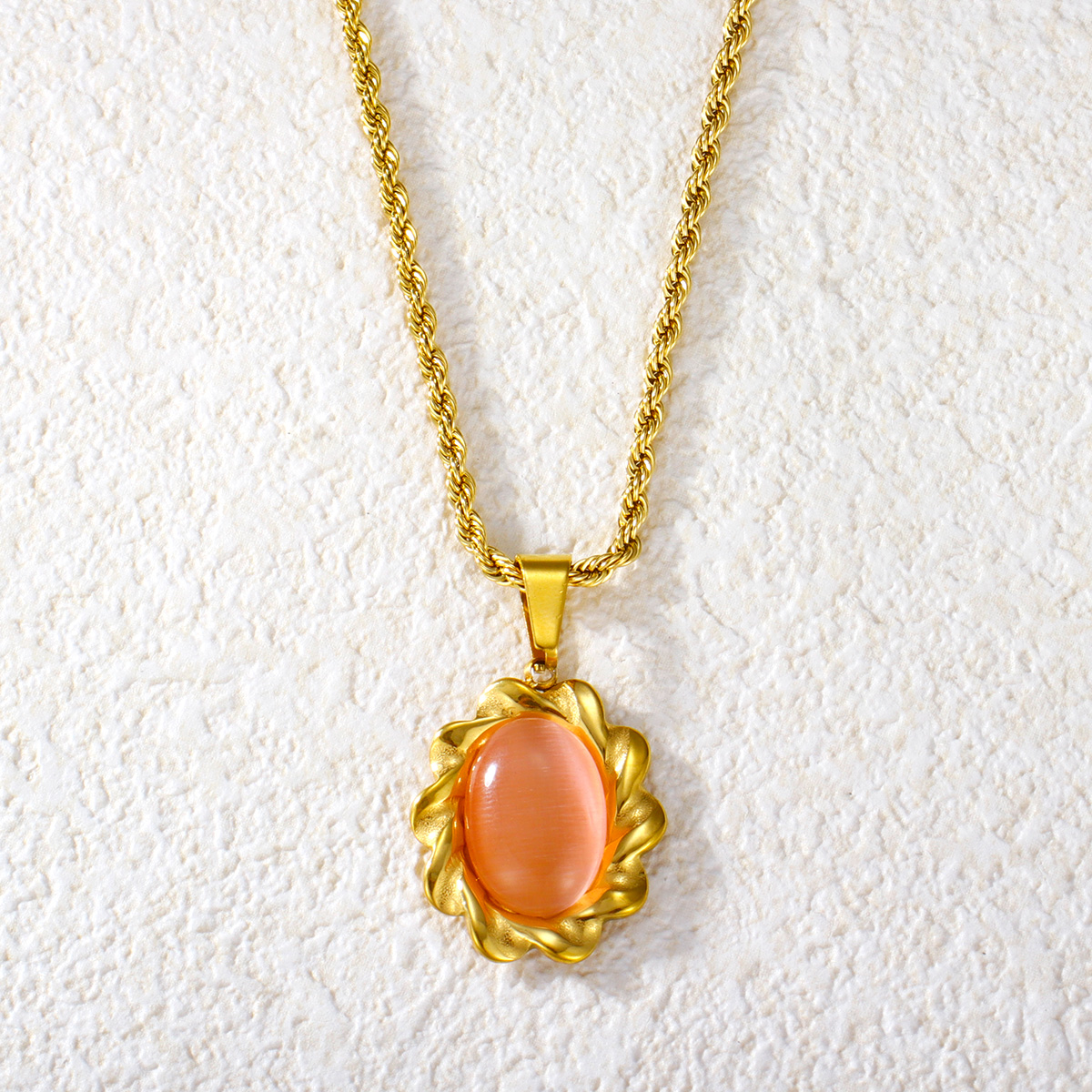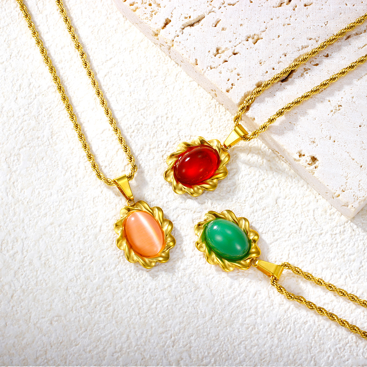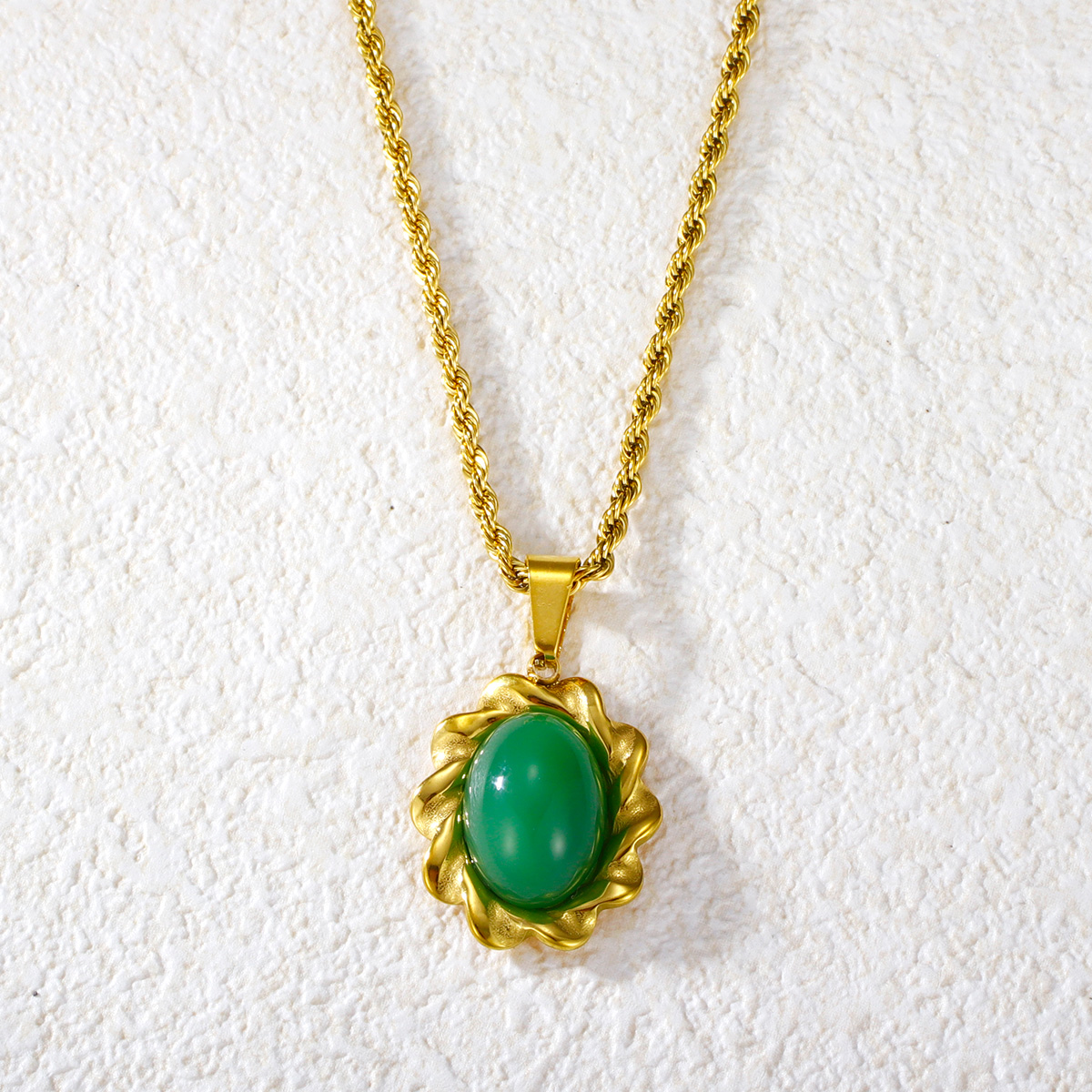 彩色玛瑙吊坠扭链镀金首饰不锈钢项链