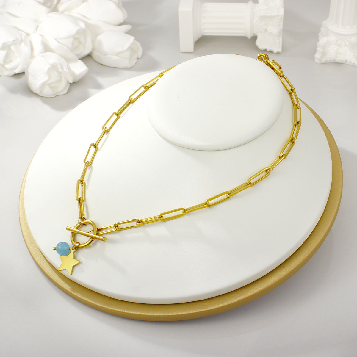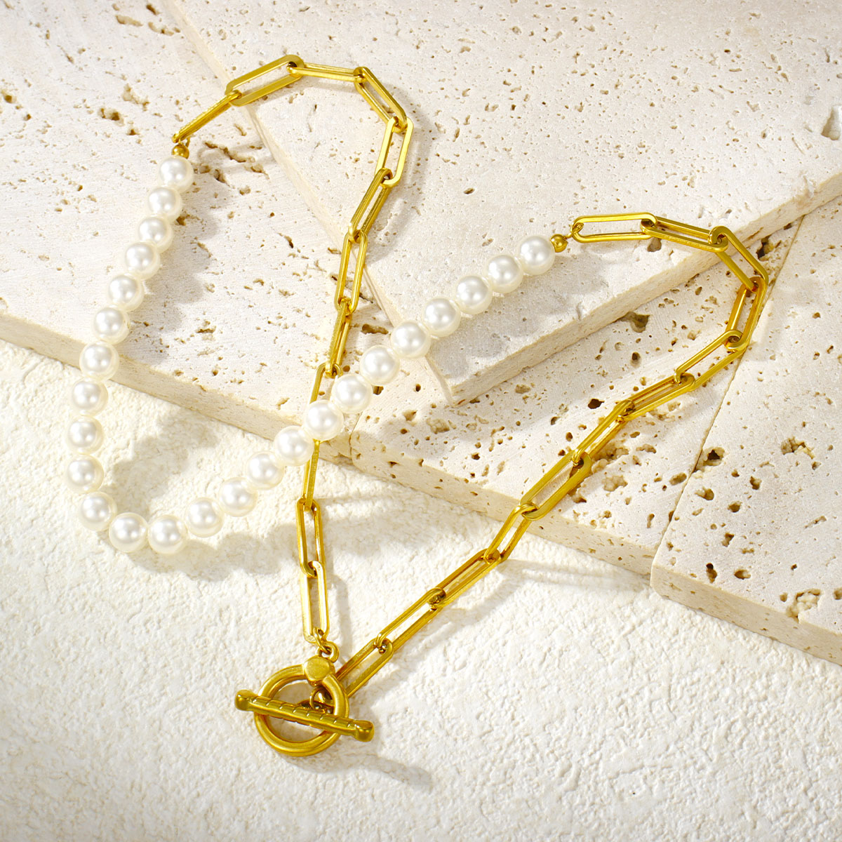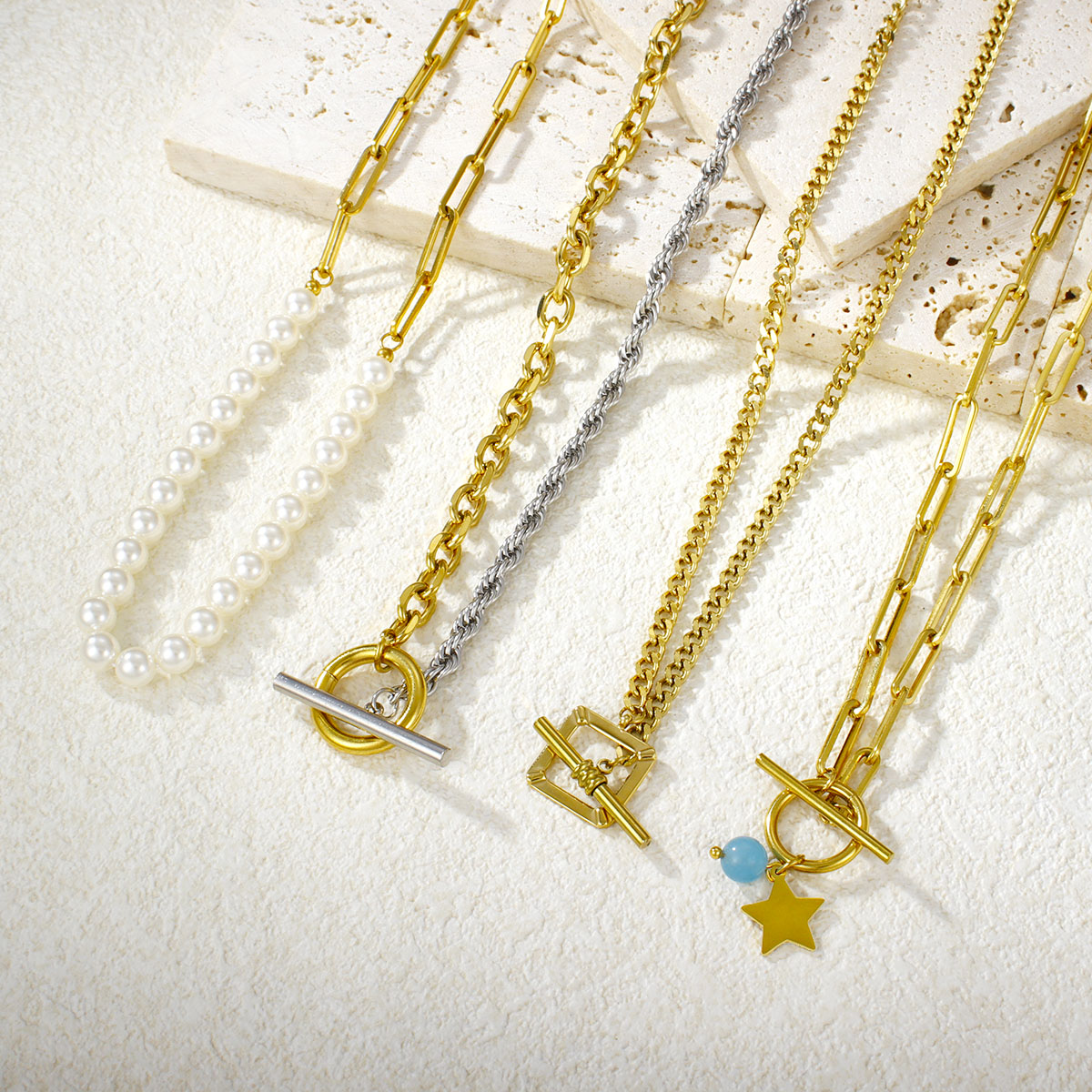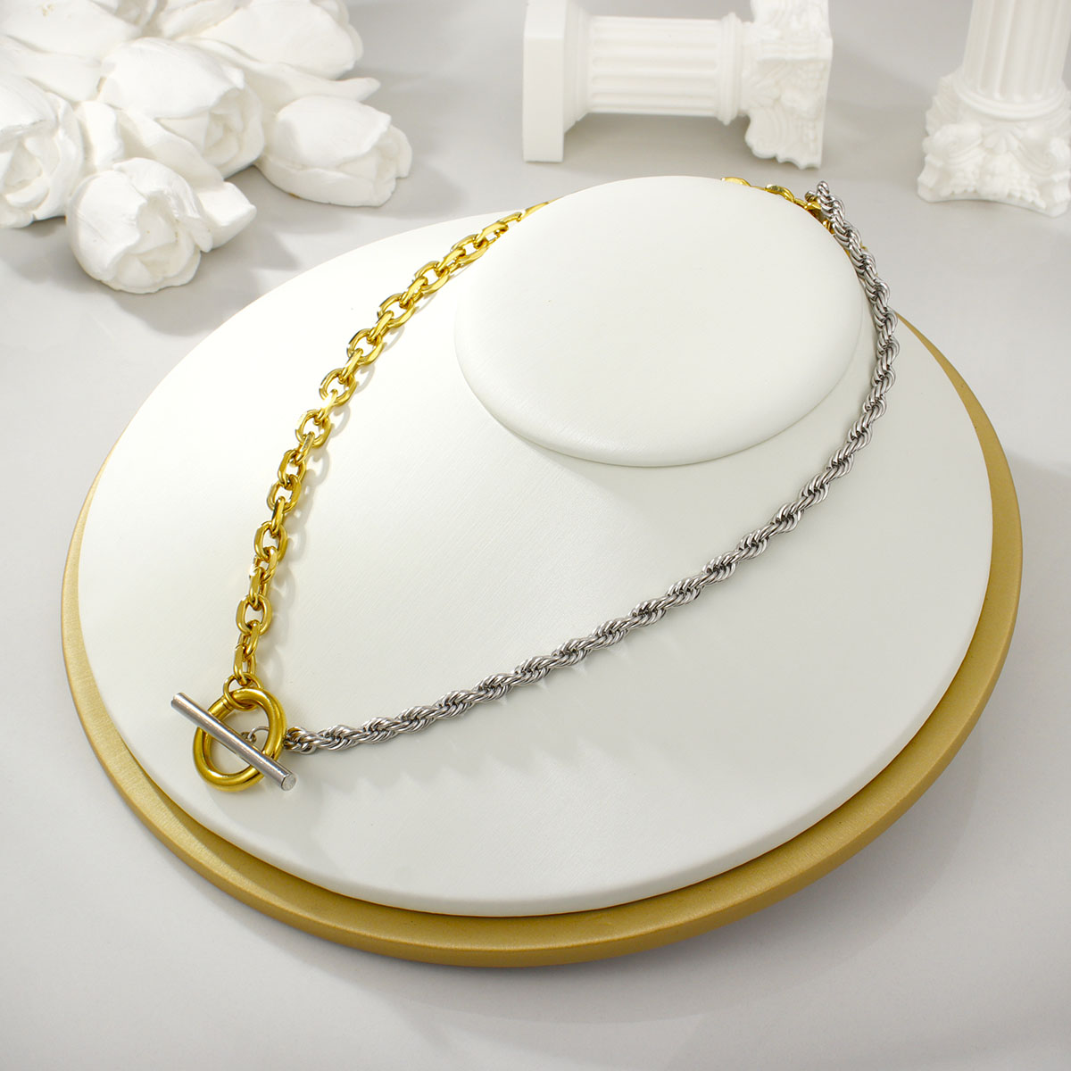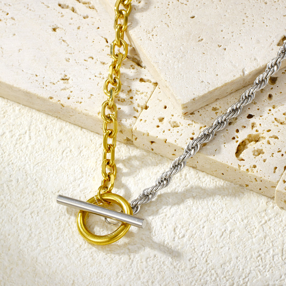 "不锈钢混合粗绳套环OT扣项链"
