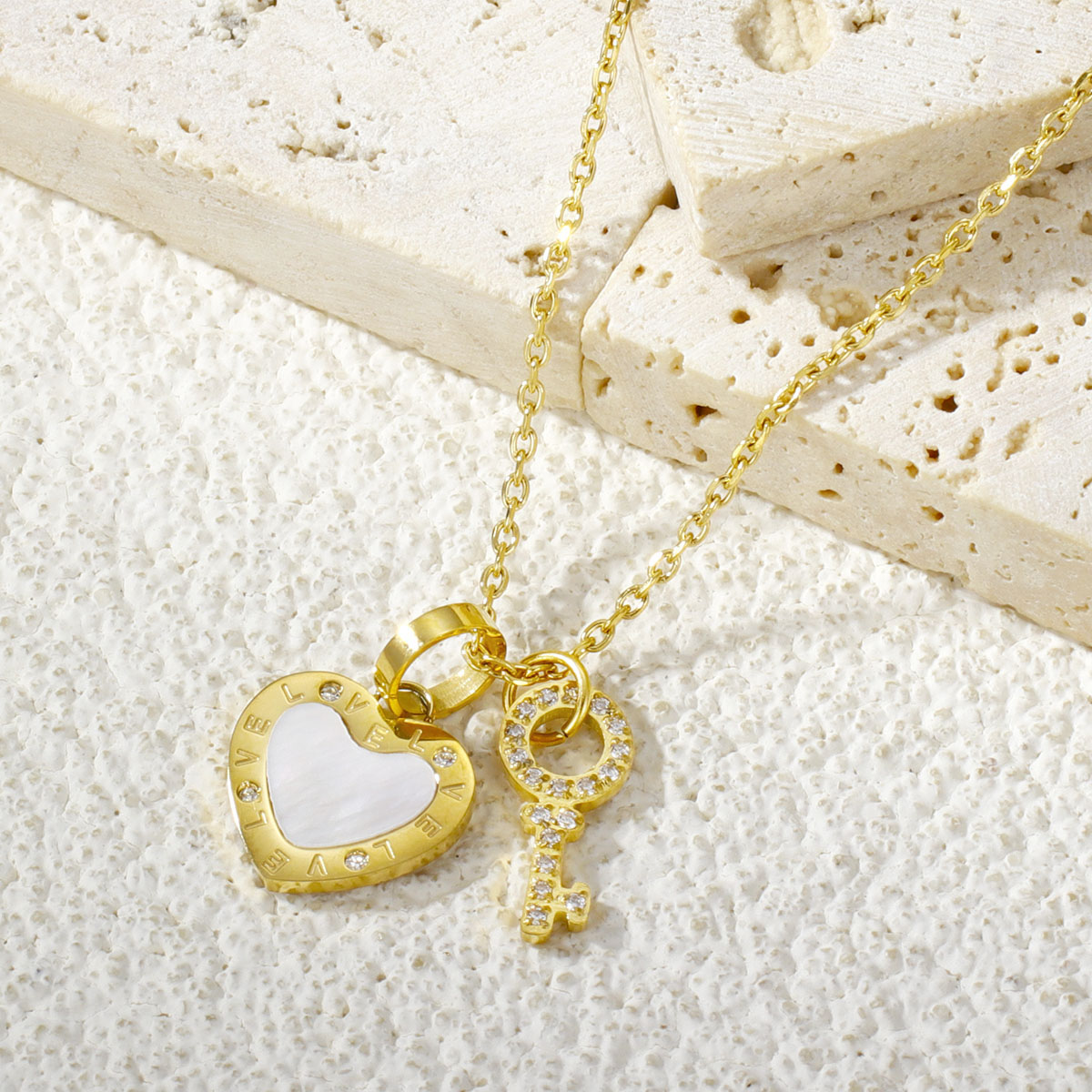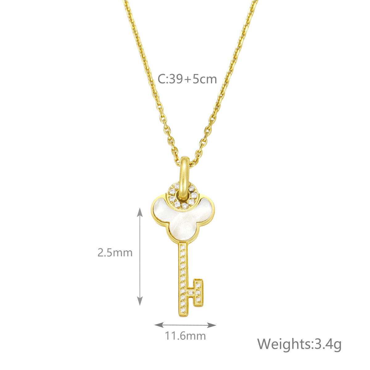 "不锈钢锁骨链项链镶满钻石的贝壳钥匙吊坠"