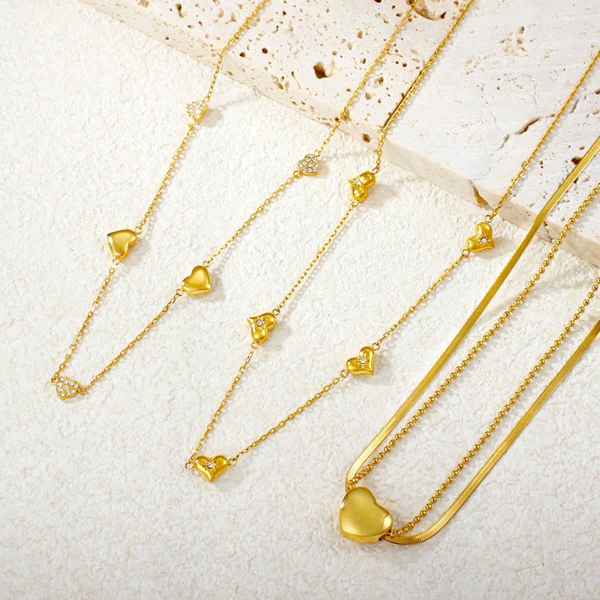 "防褪色18K镀金永恒之爱项链不锈钢心形吊坠 "