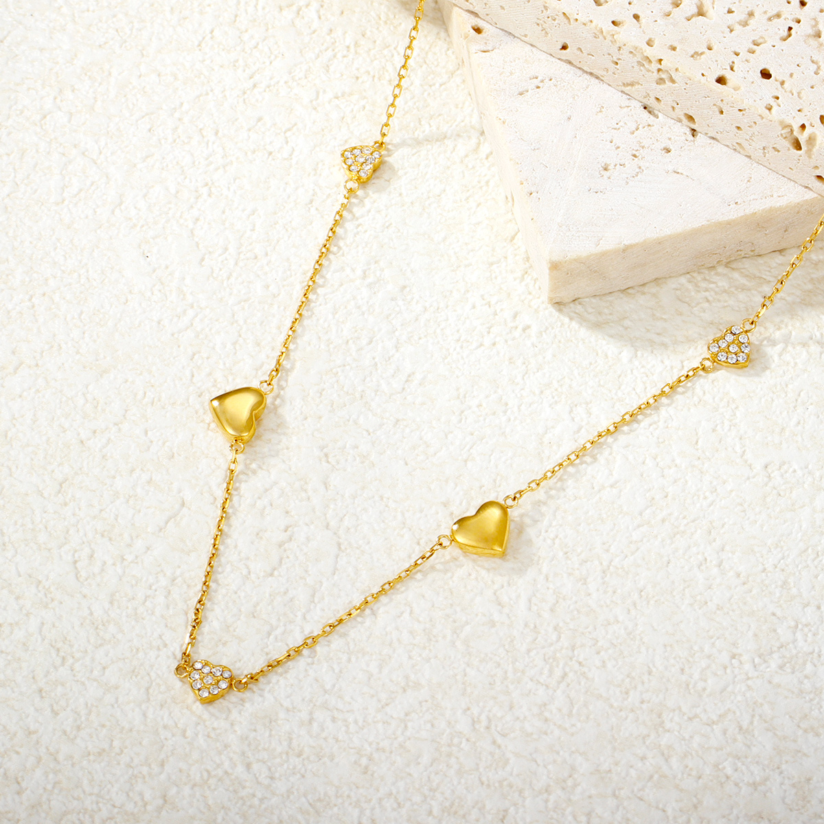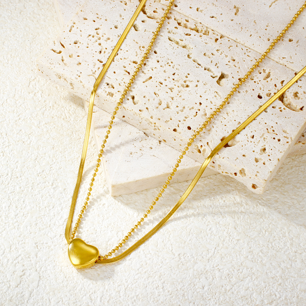 防褪色18K镀金永恒之爱项链不锈钢心形吊坠