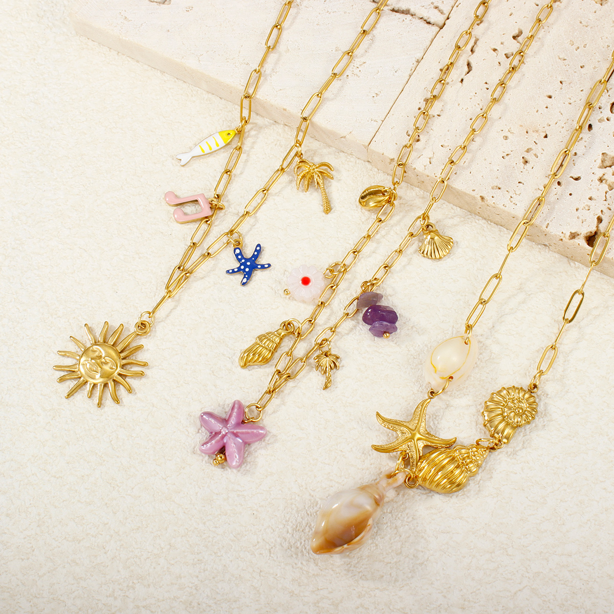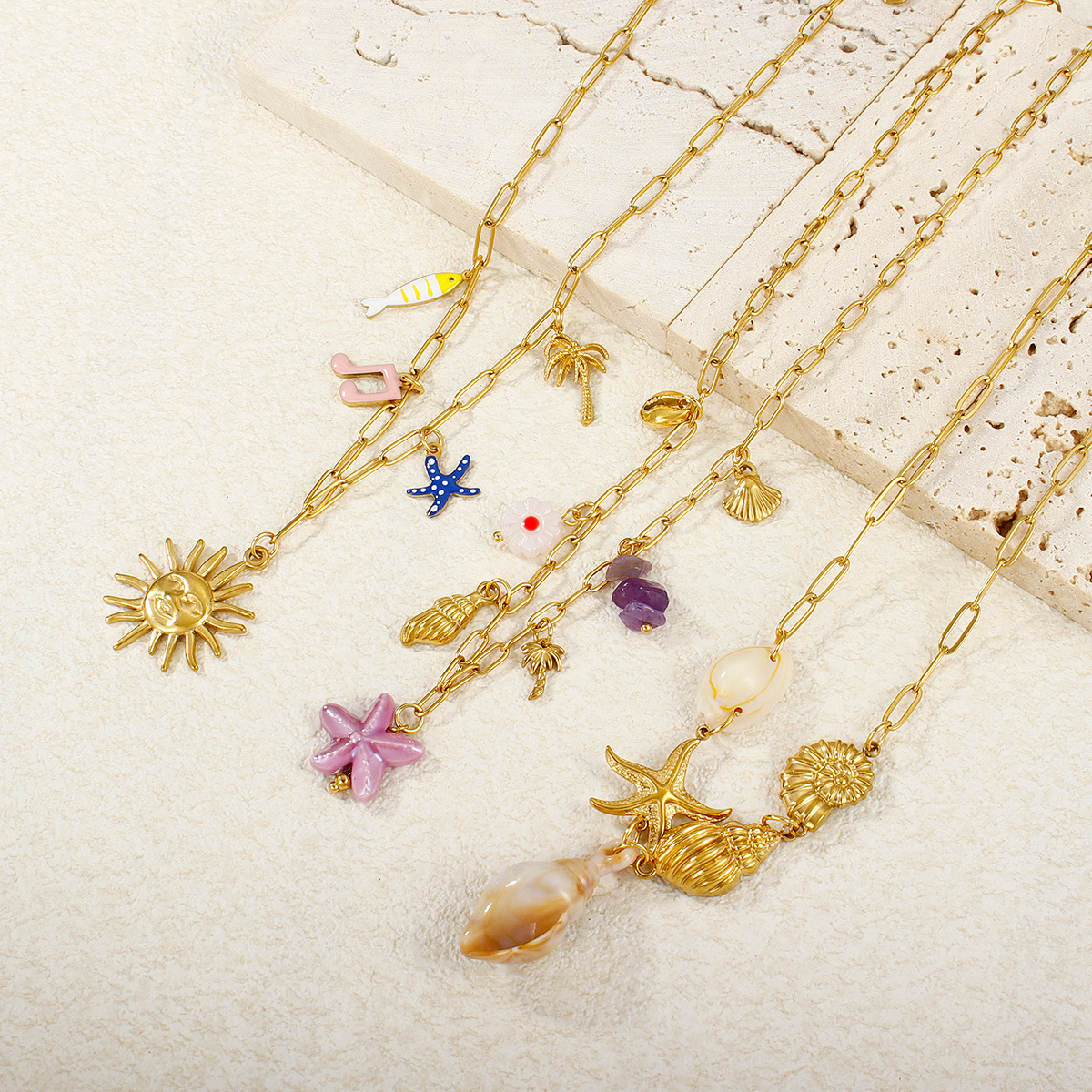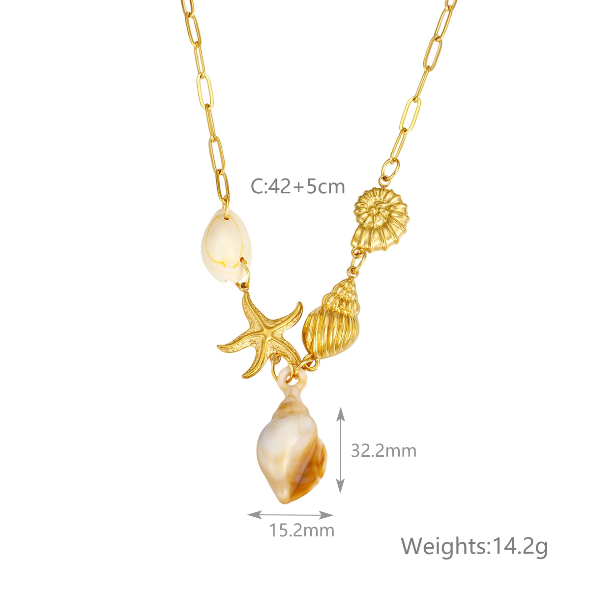 夏季海洋风不锈钢镀18k金可拆卸贝壳吊坠项链