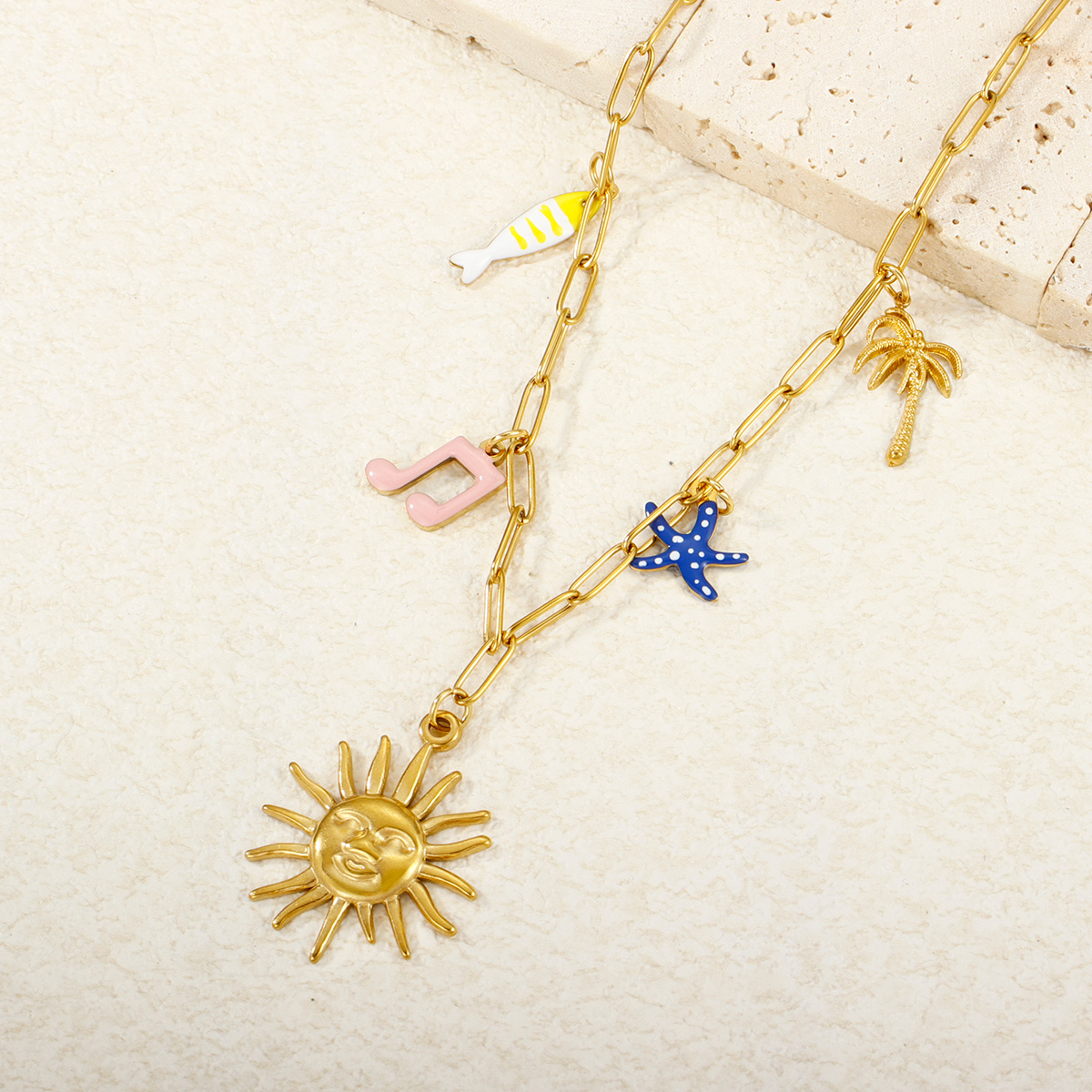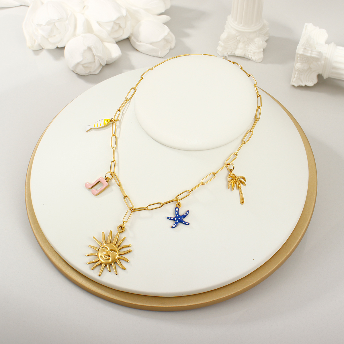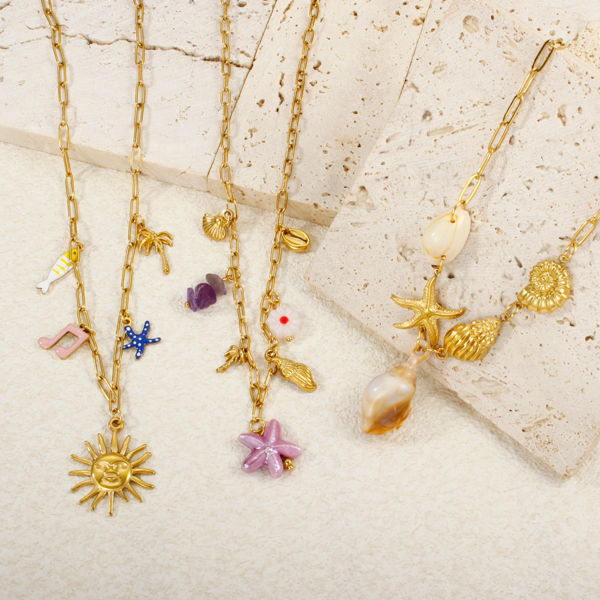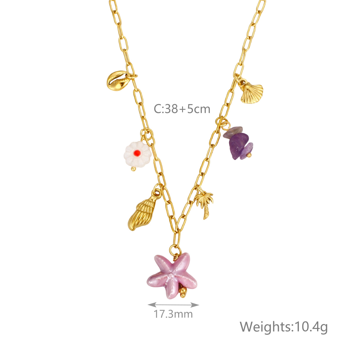 夏季海洋风不锈钢镀18k金可拆卸贝壳吊坠项链
