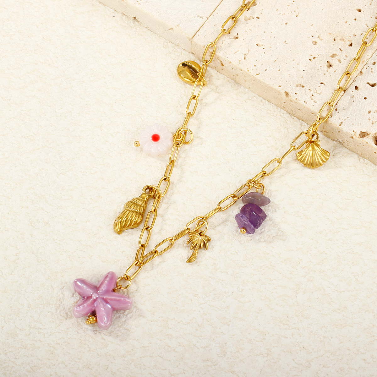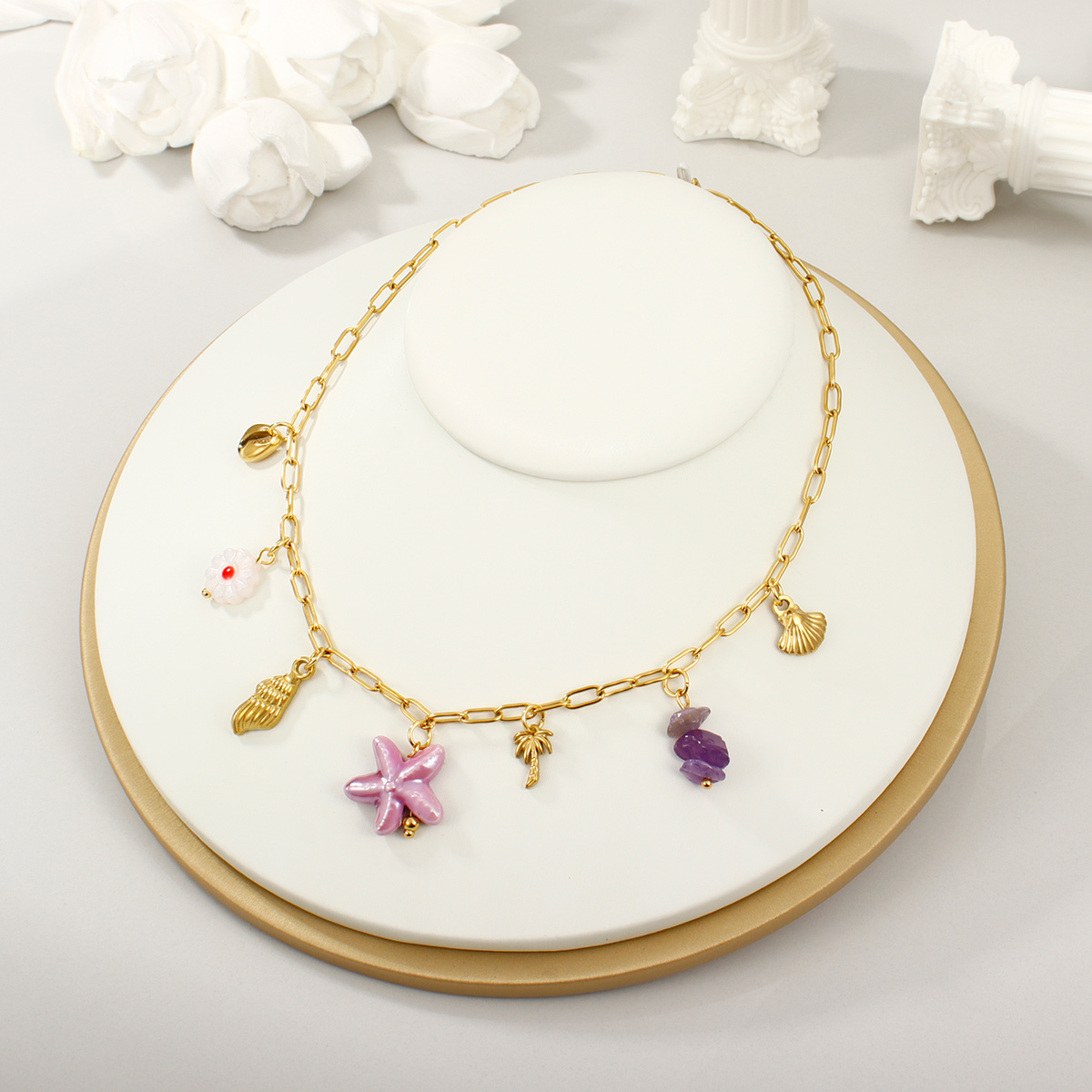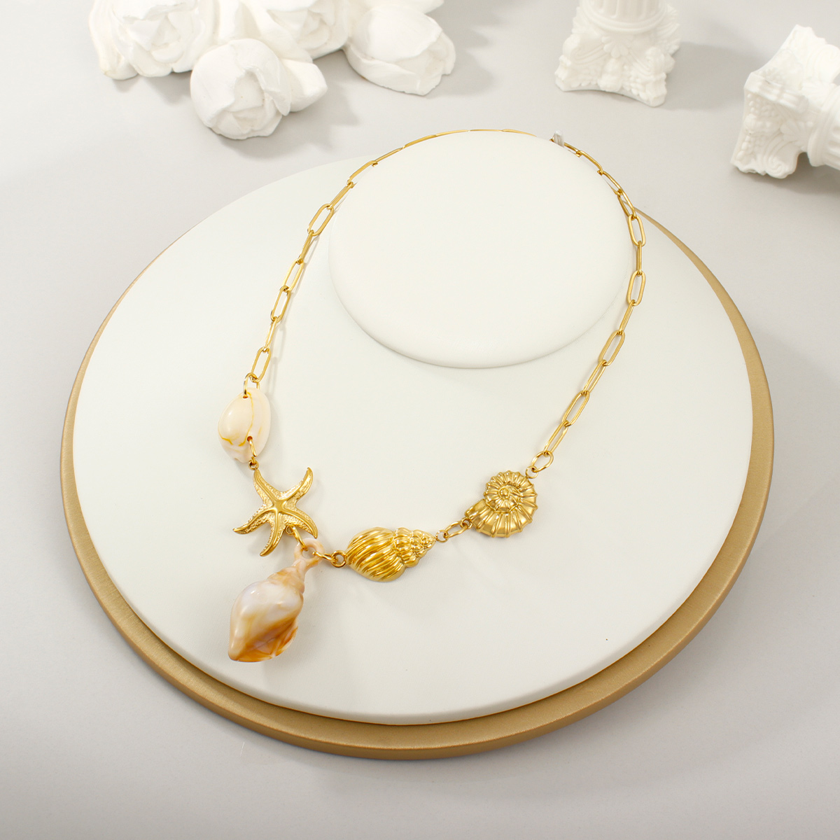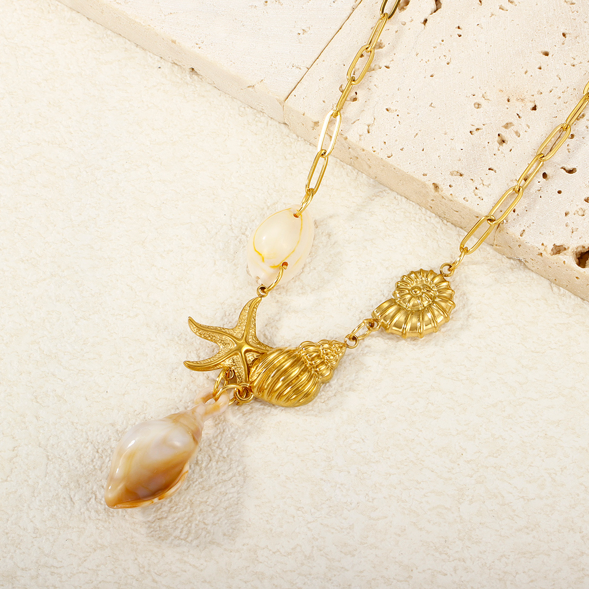 "夏季海洋风不锈钢镀18k金可拆卸贝壳吊坠项链"