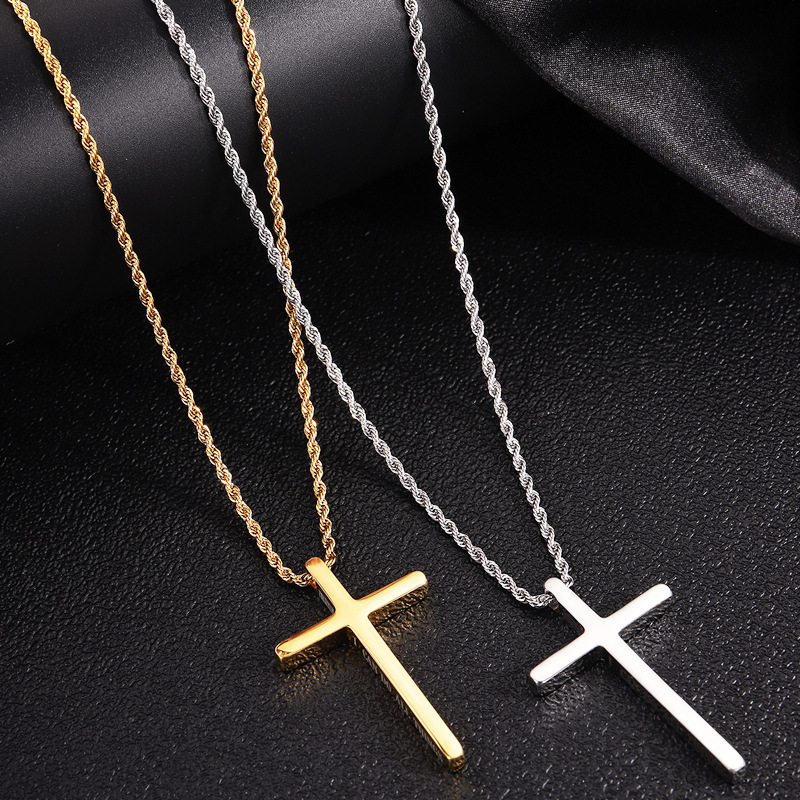 简约不锈钢黑色十字架吊坠项链,可刻字