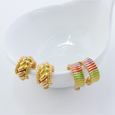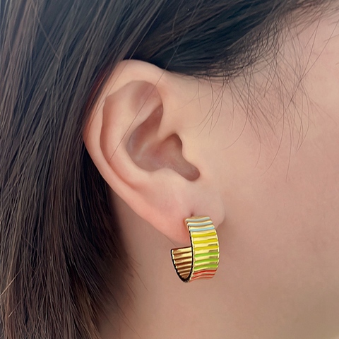 " 多彩螺旋弧立体耳环  "