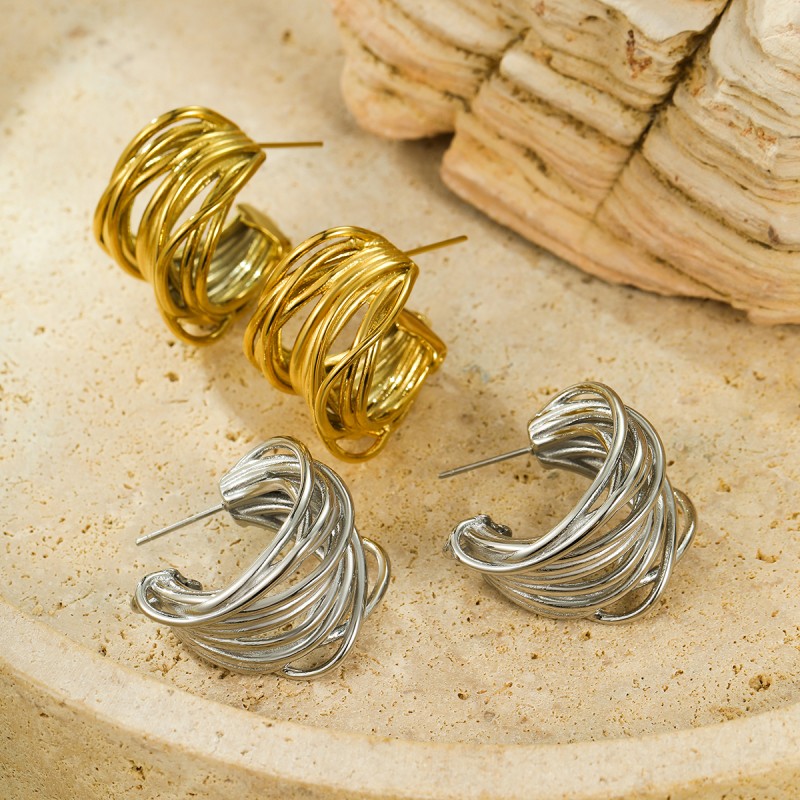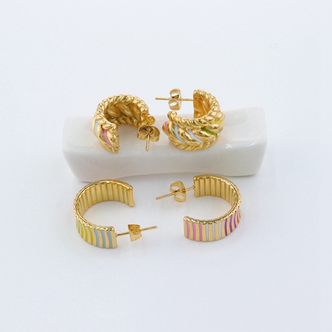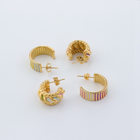 不锈钢金属耳环多彩螺旋弧立体耳环首饰