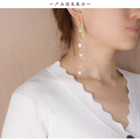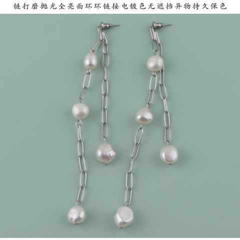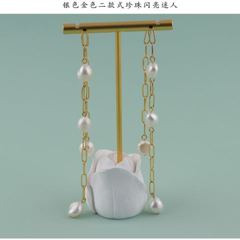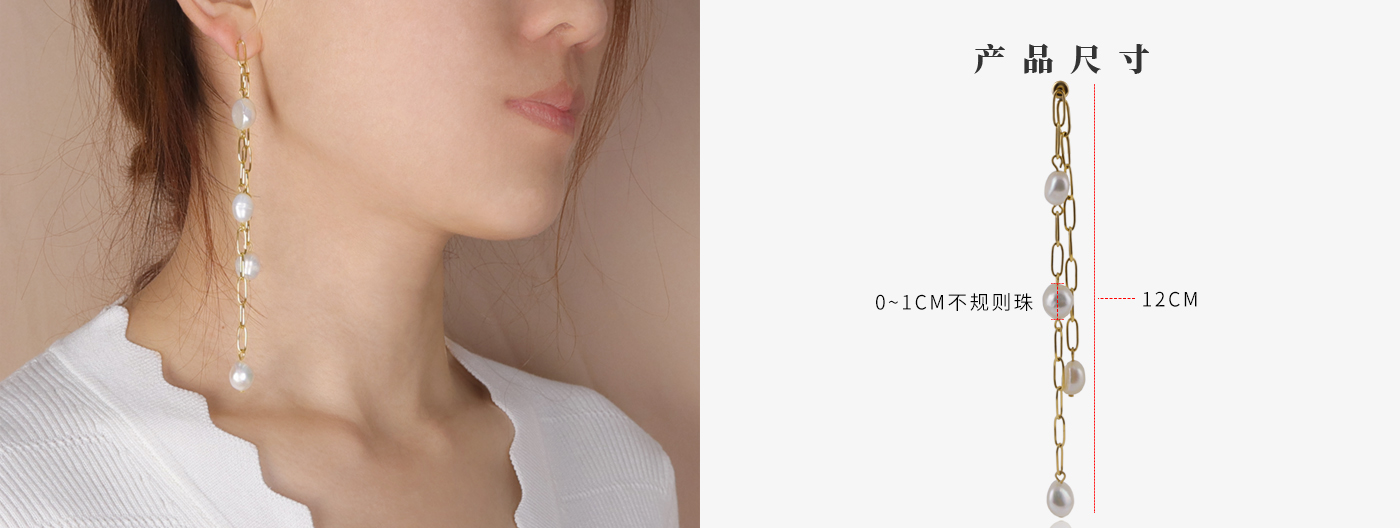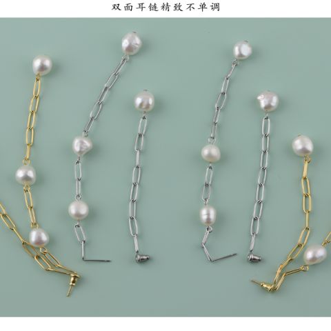 时尚耳环定制自然风双面珍珠耳链