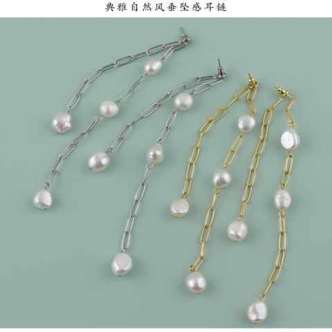 "自然风双面珍珠耳链"