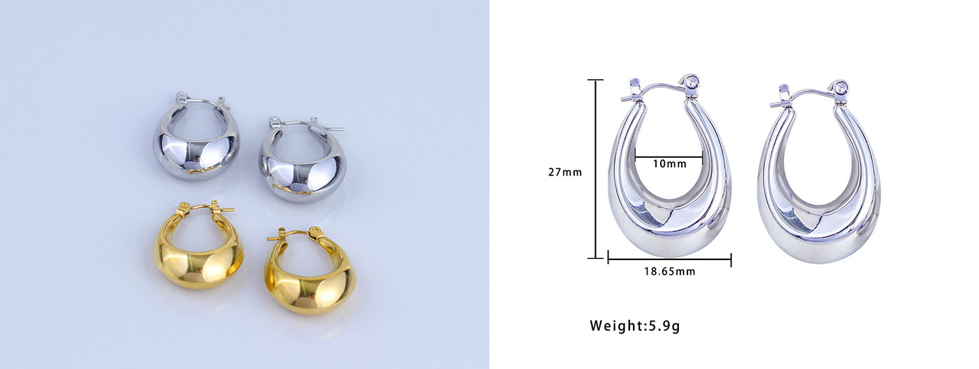 不锈钢光面U形金银双色耳环饰品厂家