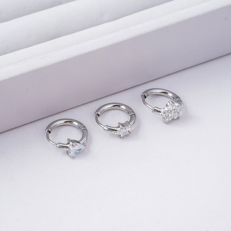 "不锈钢圆形镶嵌5A级锆石耳环"
