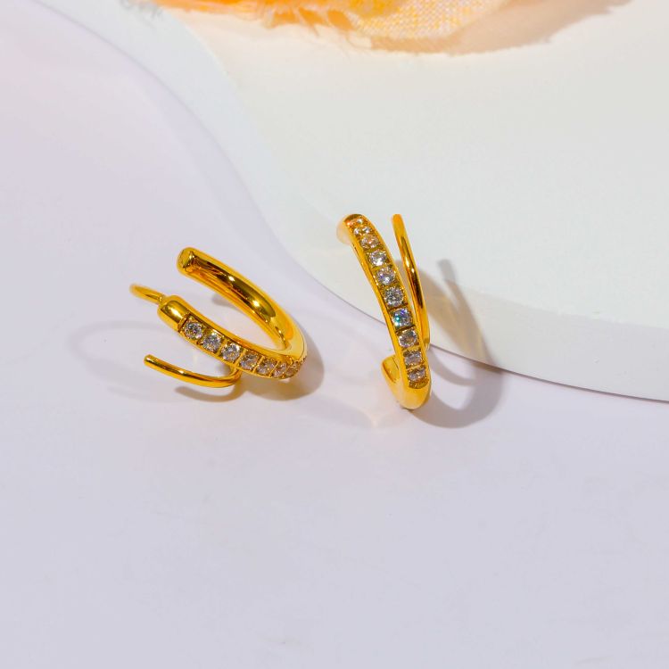 "钢线镶嵌锆石夹扣耳环"