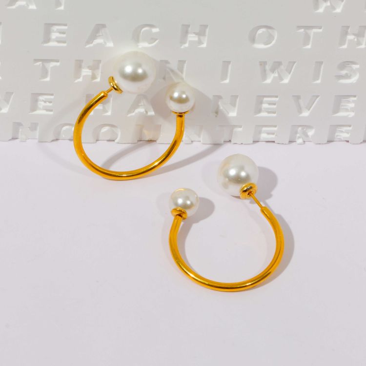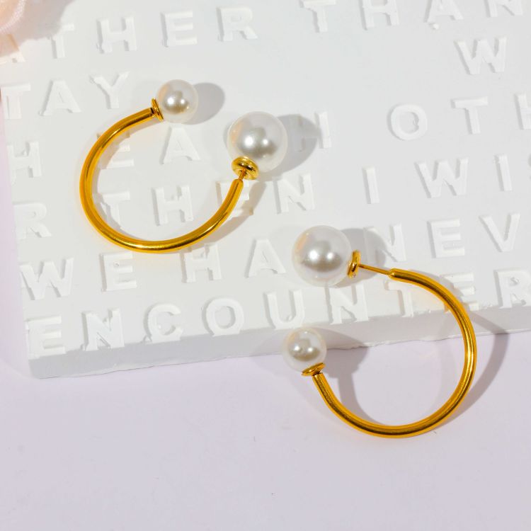 "钢线镶嵌天然淡水珍珠耳环"