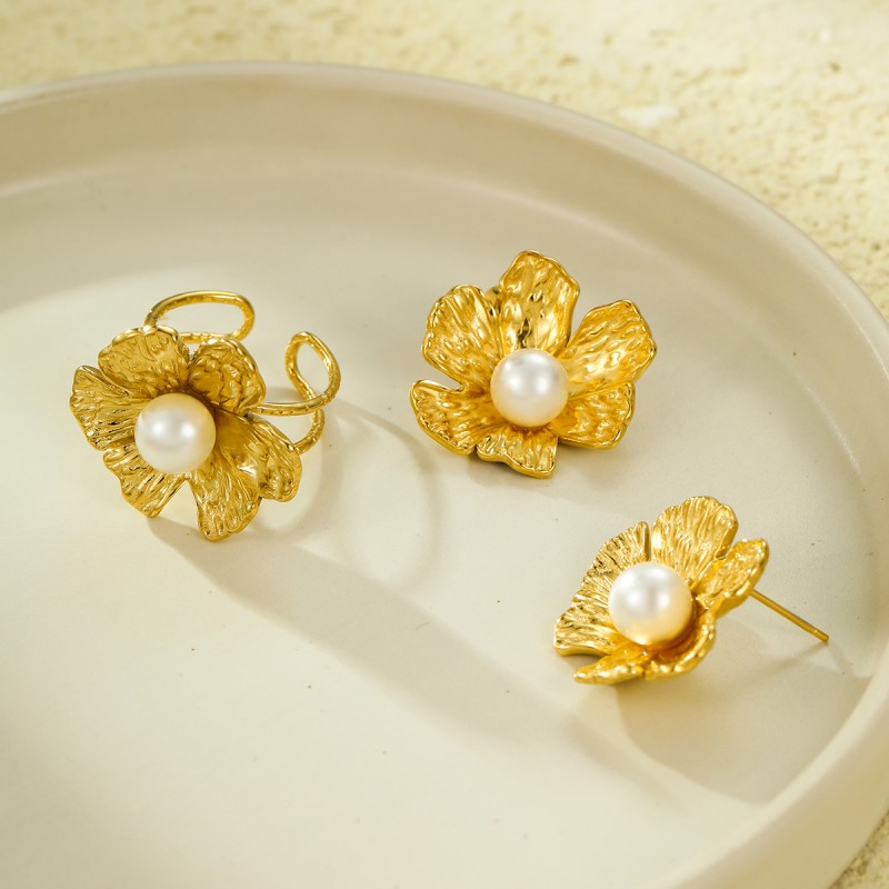 "花朵戒指耳环套装"