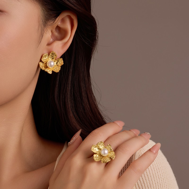 花朵戒指耳环套装首饰饰品工厂供应商