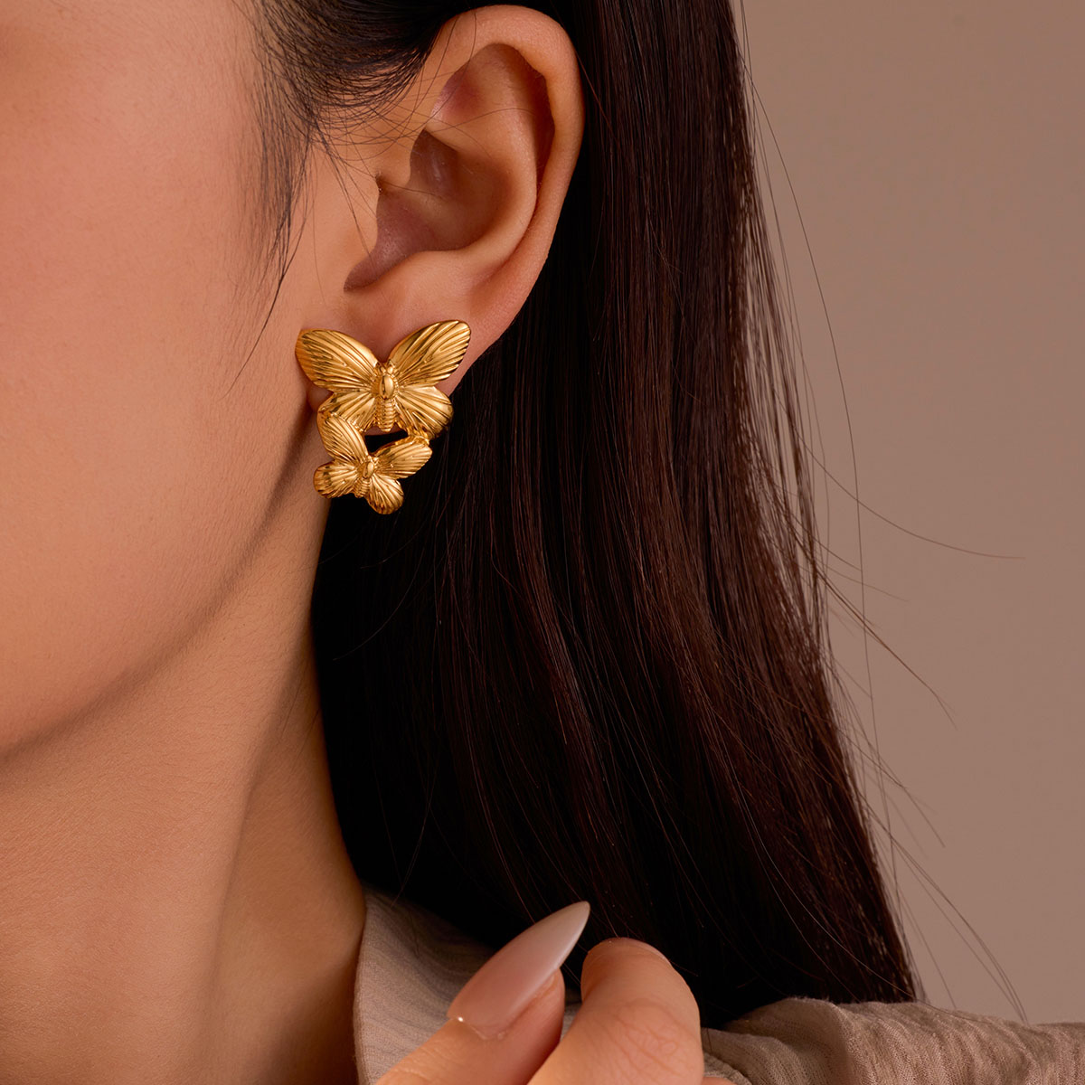 "不锈钢蝴蝶魅力耳钉饰品"