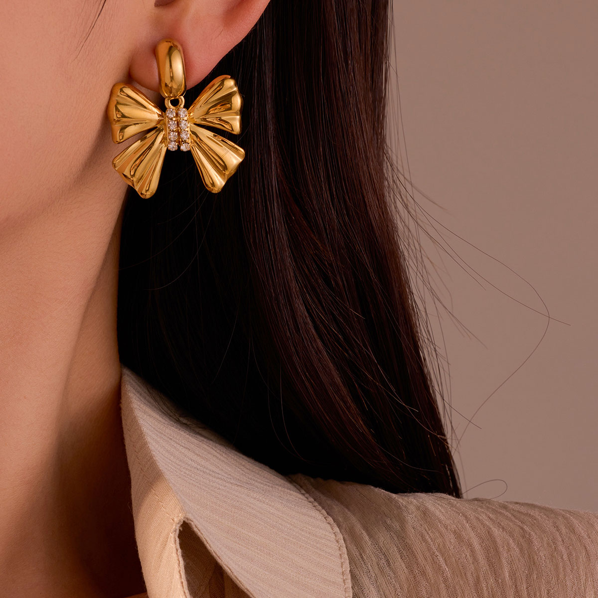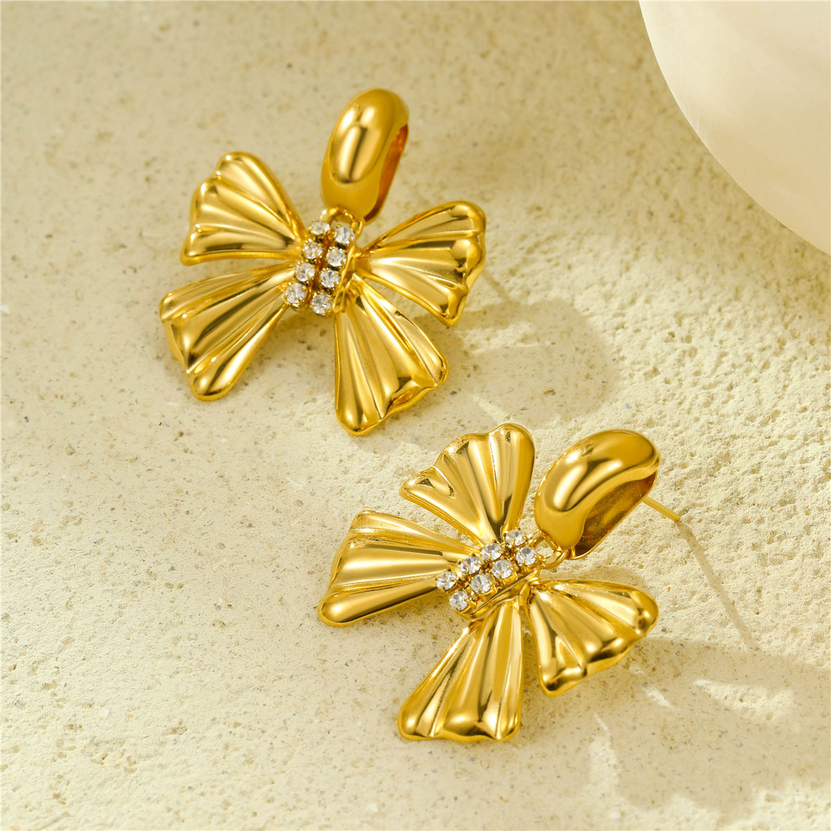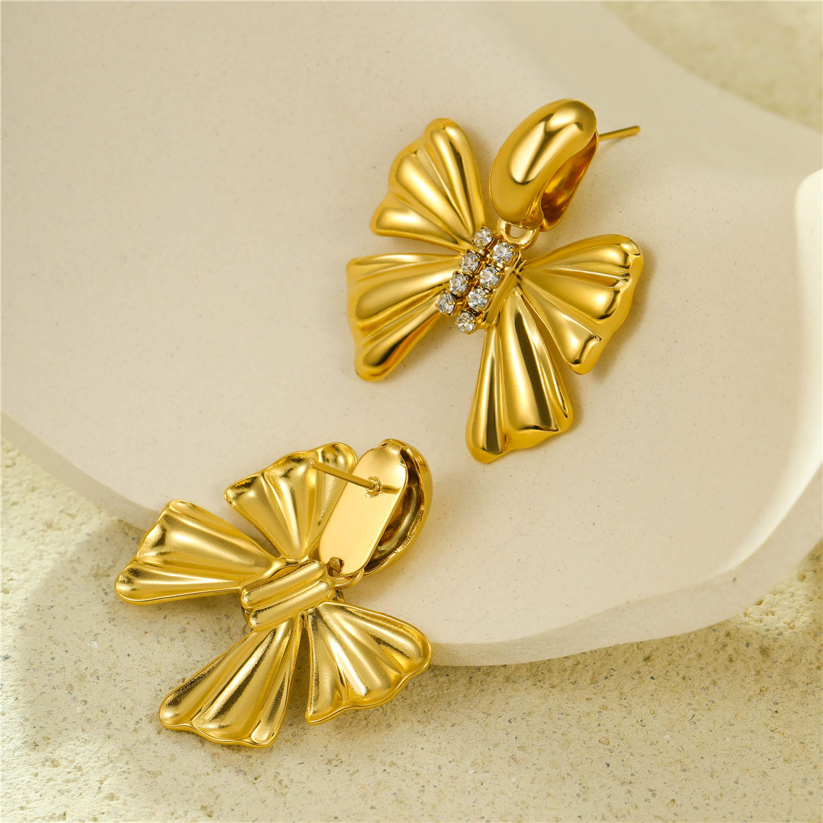 "时尚18K镀金不锈钢蝴蝶结耳坠"