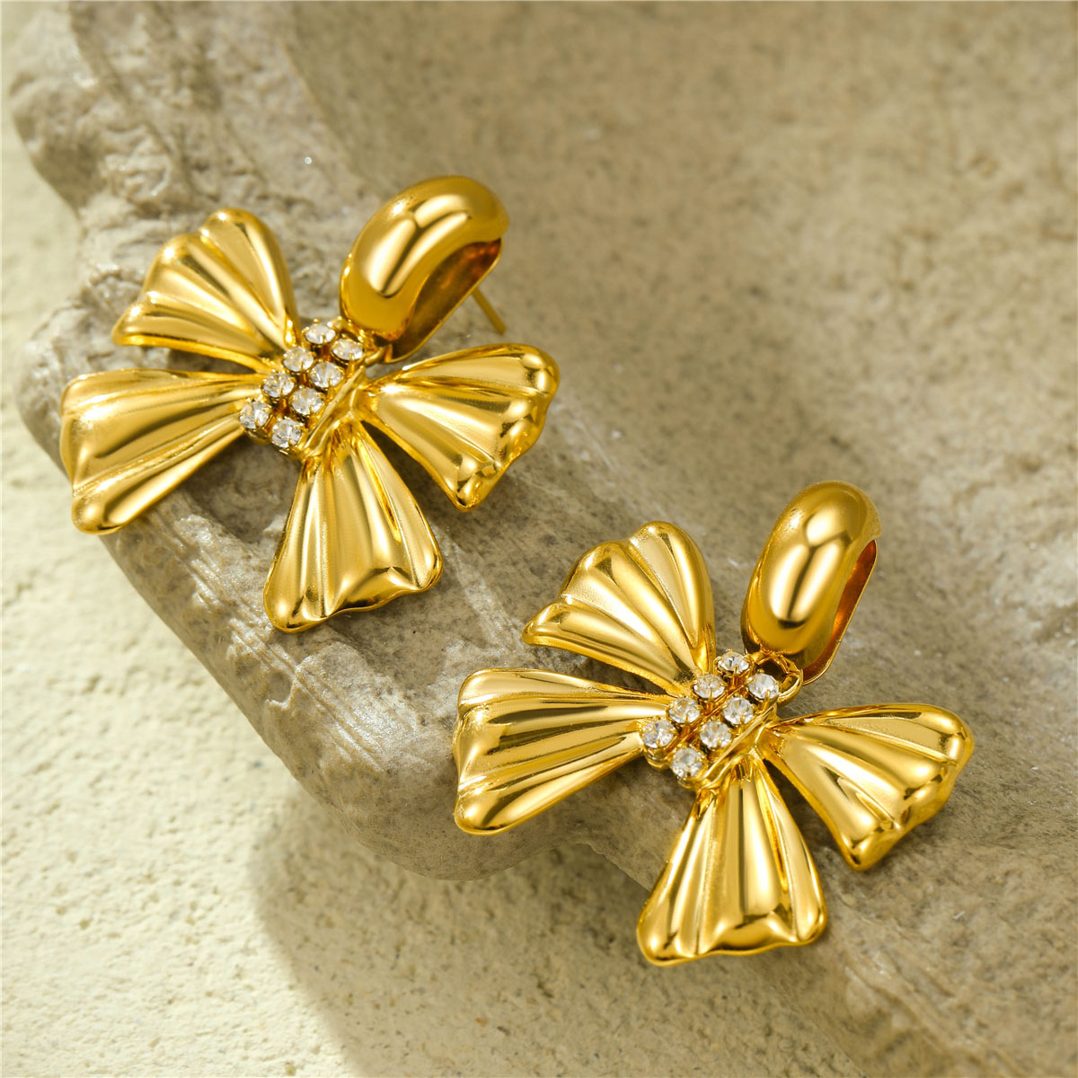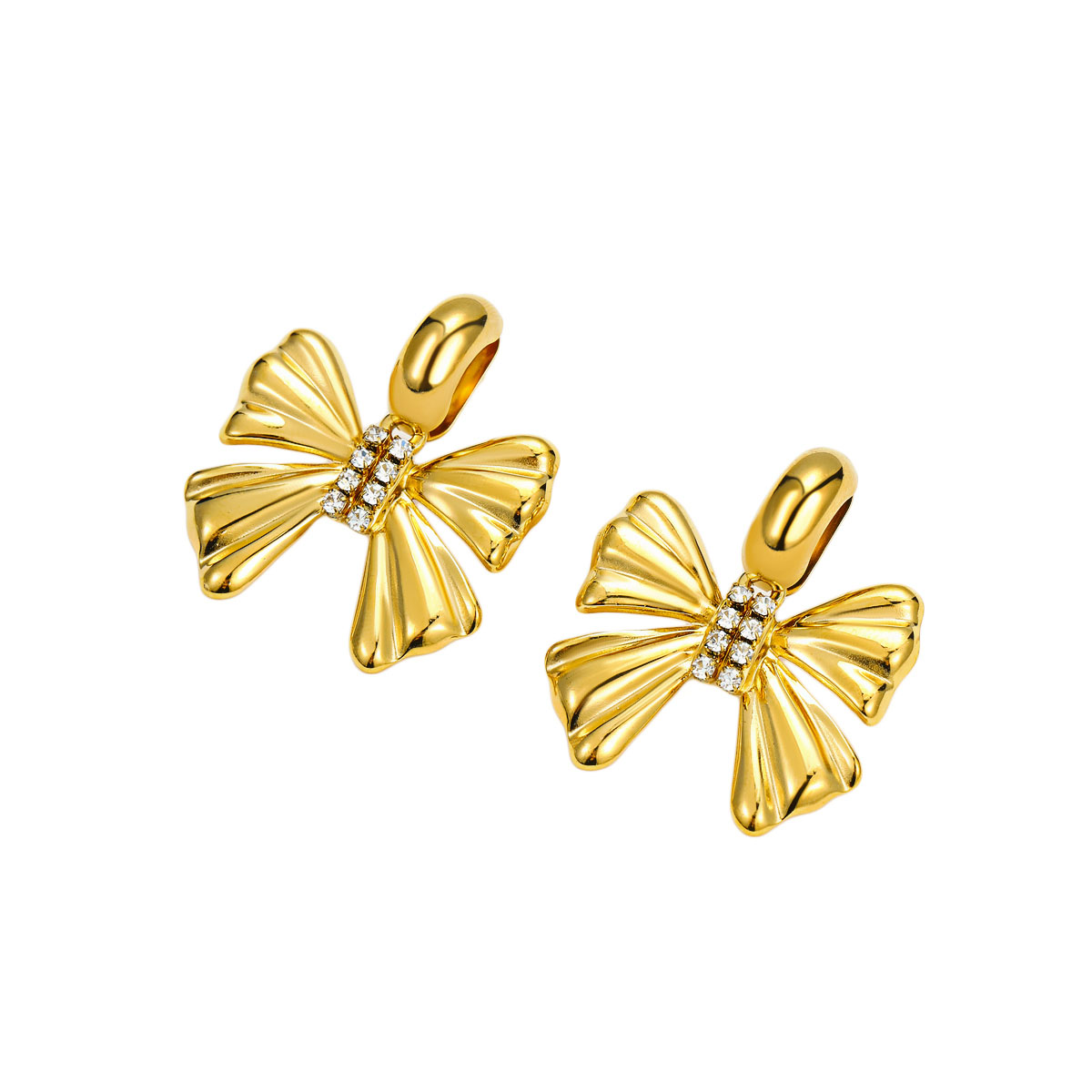 时尚18K镀金不锈钢蝴蝶结耳坠