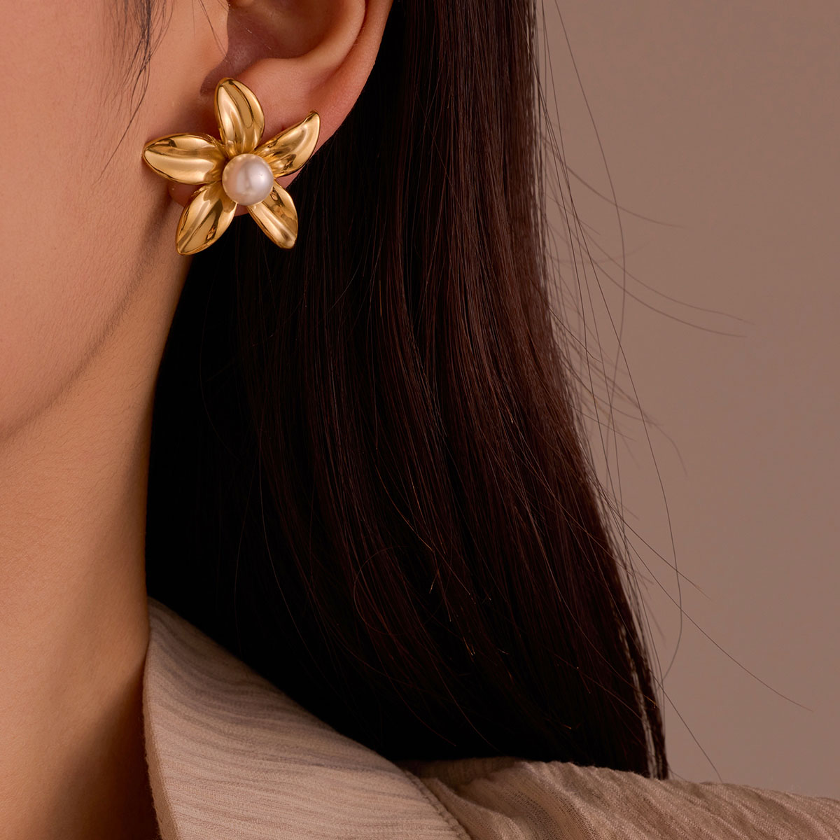 "复古珠宝18k镀金花朵耳环"