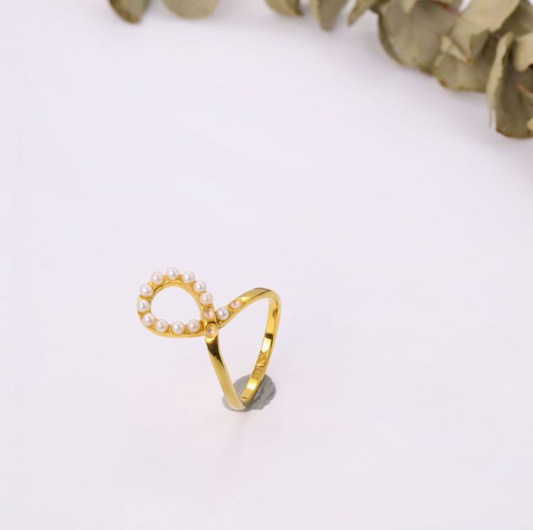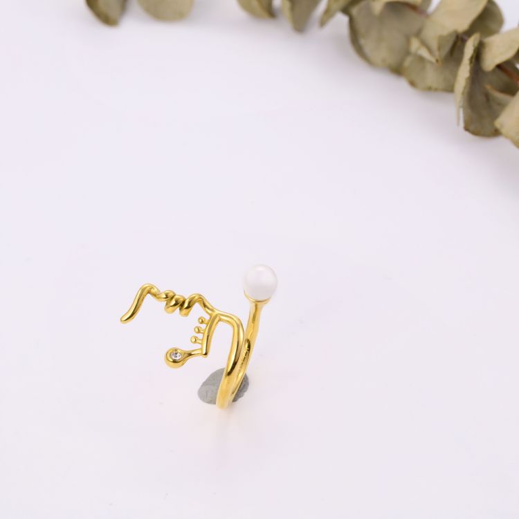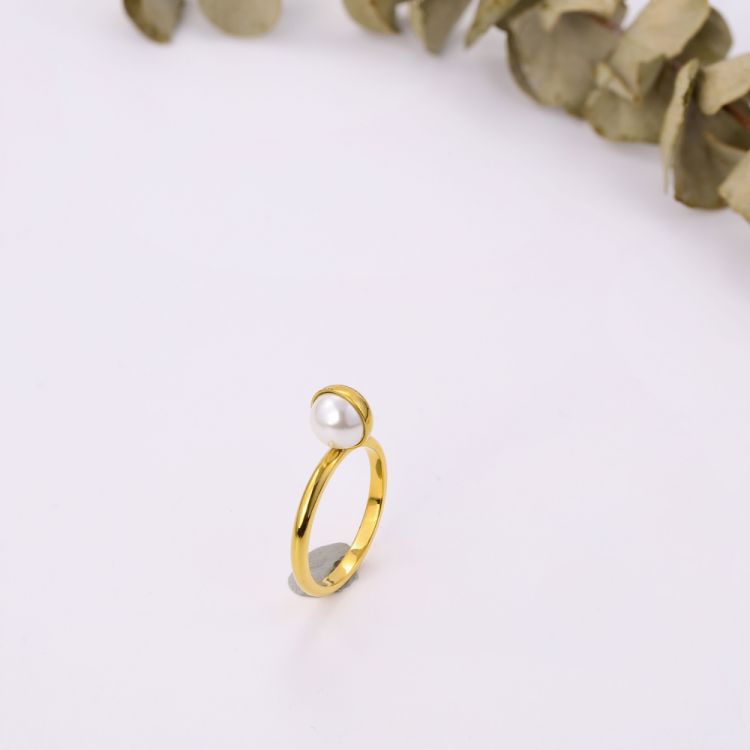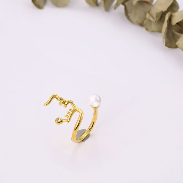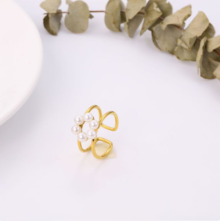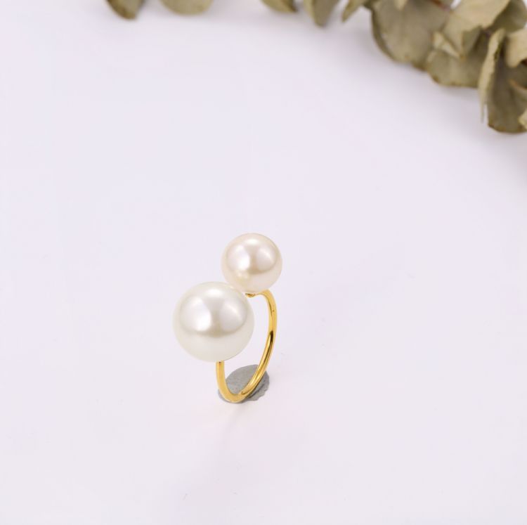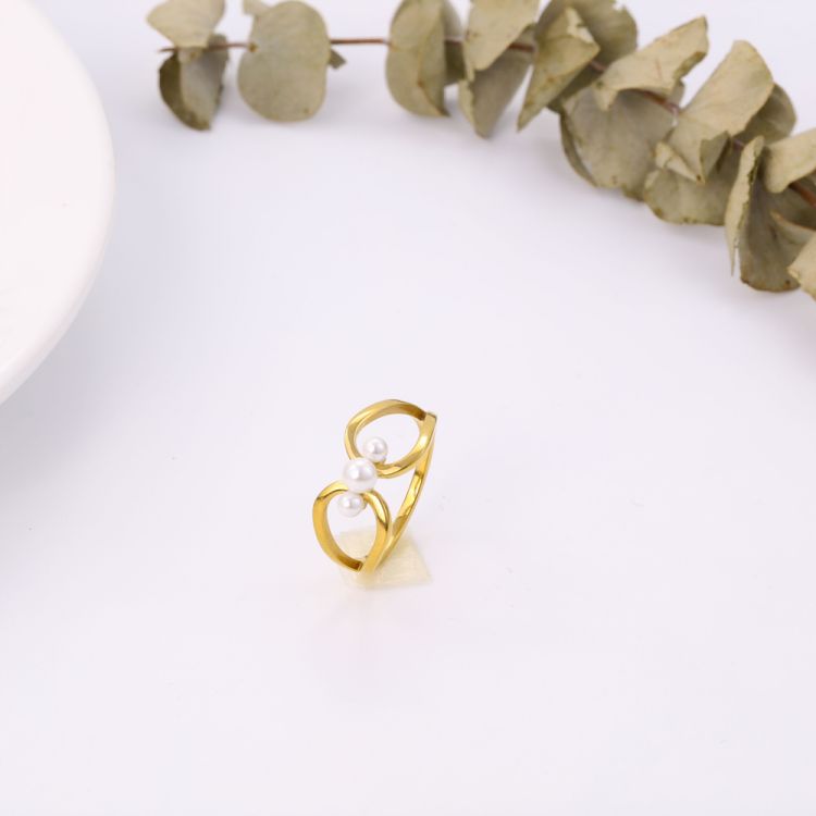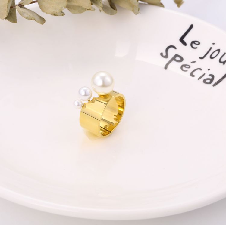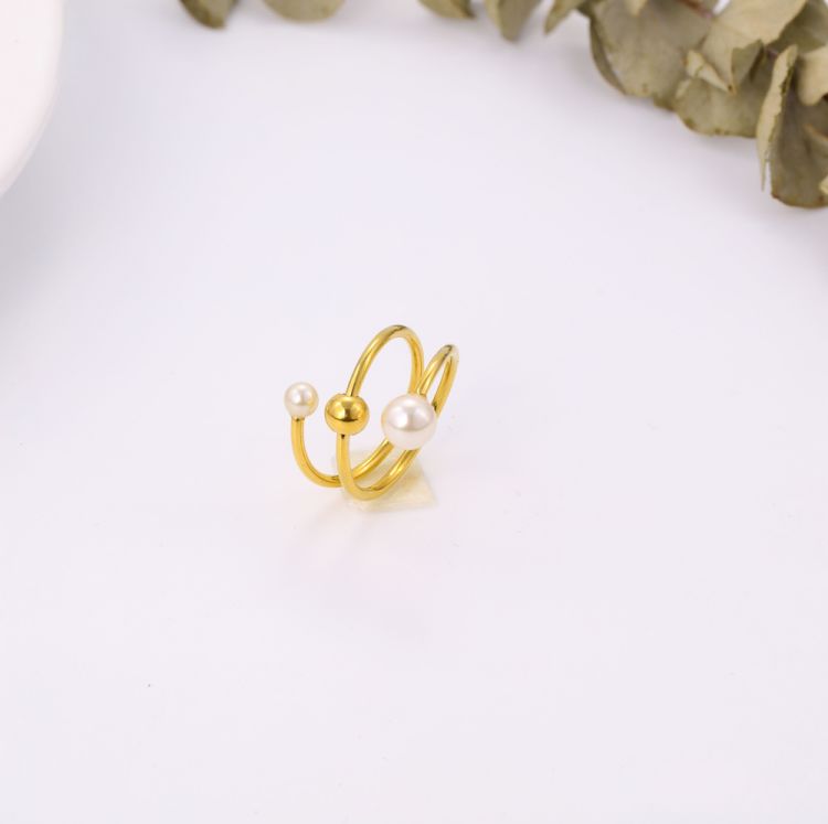 "不锈钢镶嵌珍珠戒指钢线环形珍珠戒指"